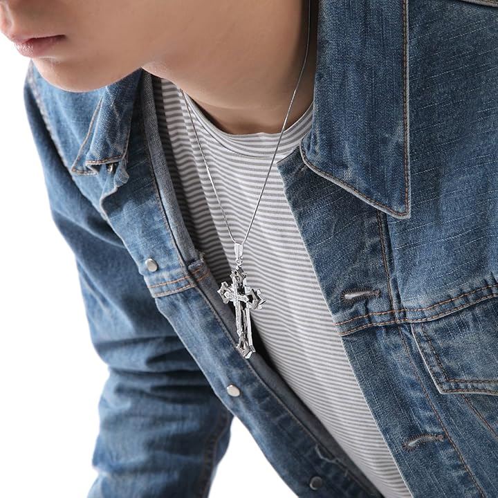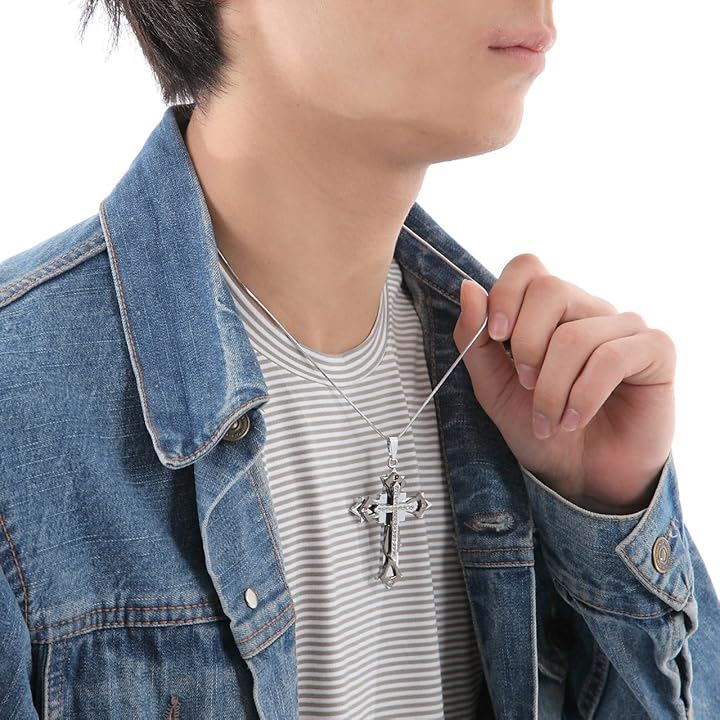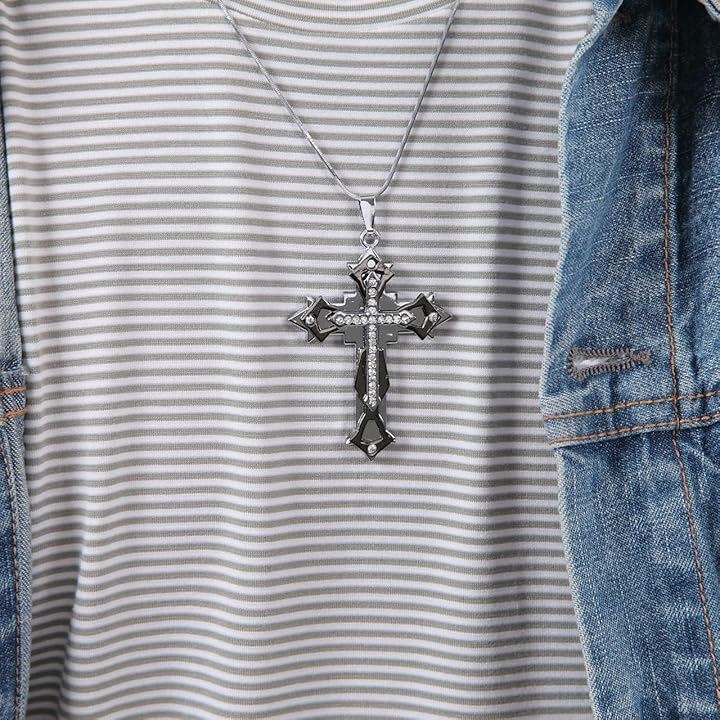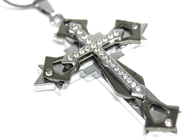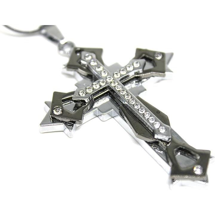 ミャオミャオ キュービックジルコニア シルバー ブラック 十字架 ネックレス メンズ メンズアクセサリー プレゼント ポーチ セット