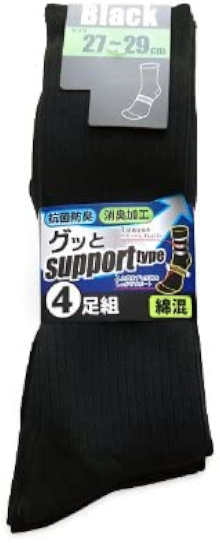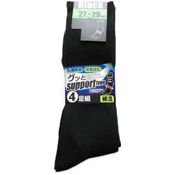 靴下 メンズ 27-29cm 黒 ビジネスソックス 抗菌防臭 リブソックス 黒色 4足組 D10