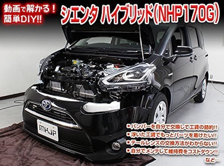 ・ジャッキアップ方法の解説やエンジンオイル交換方法・ライト交換方法・ フロント(リア)バンパー交換方法・内張り交換方法などなど、シエンタ ハイブリッド(NHP170G)の 各種パーツの取外し方法や取付け方法、改造やチューニングを解説したDVDです。
