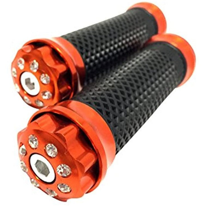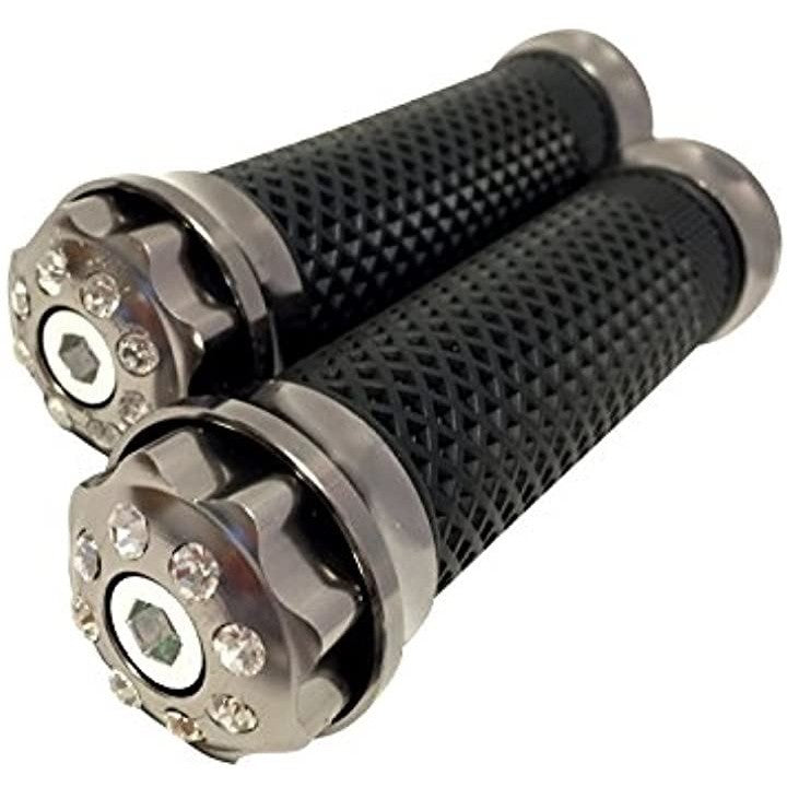 グリップ ストーン付バーエンド 22mm用 ラバー アルミ バイク