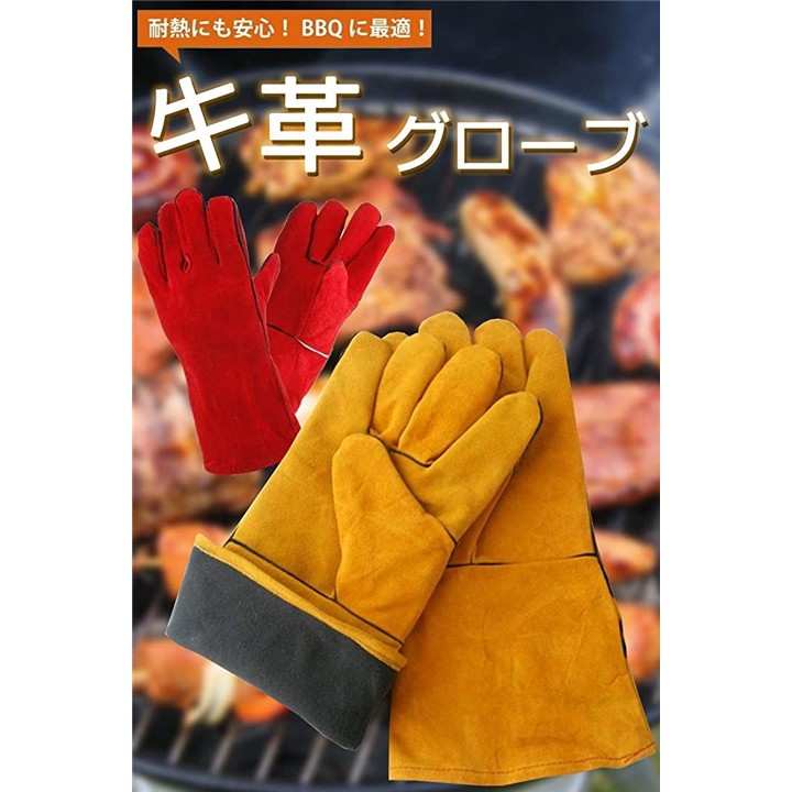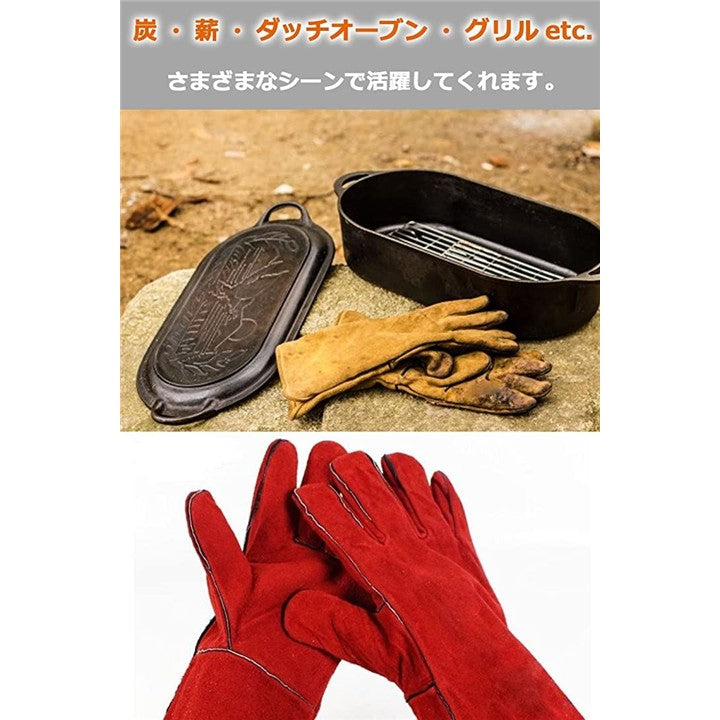 耐熱 グローブ 手袋 溶接 牛革 BBQ バーベキュー アウトドア オーブン グリル 薪ストーブ キャンプ