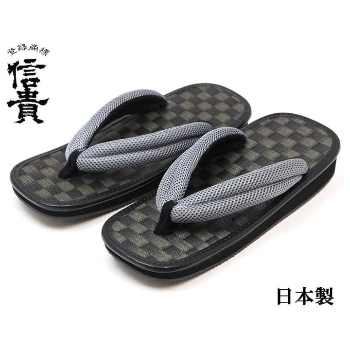 男性用 雪駄 草履 市松 黒畳 メッシュ鼻緒 ゴム底 日本製 32-stk-1 グレー 9寸