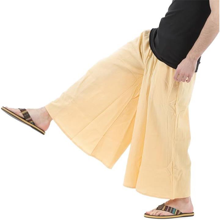 [OKI(オキ)] タイパンツ ゴム仕様 ワイドパンツ ユニセックス メンズ レディース エスニック アジアン (無地マスタード) |
