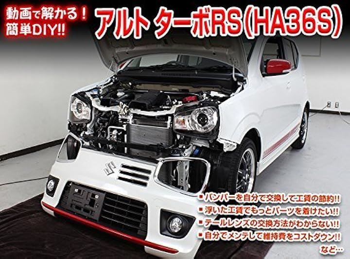 ・ルームランプ交換方法、ライト交換方法・ フロント(リア)バンパー交換方法・内張り交換方法などなど、アルト ターボ RS (HA36S) の 各種パーツの取外し方法や取付け方法、改造やチューニングを解説したDVD。