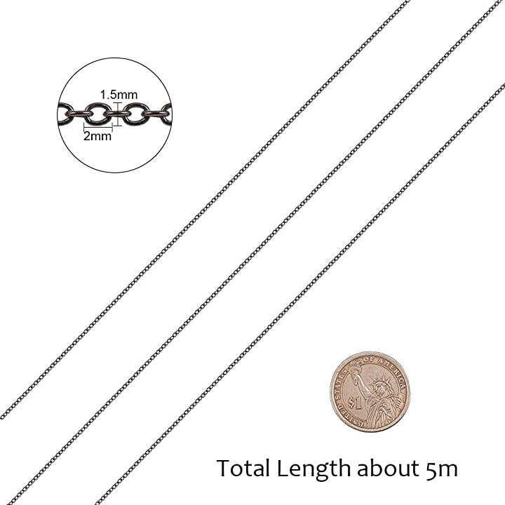 5m アズキチェーン 十字 リング ブラス ジュエリー用 ネックレス パーツ 2x1.5x0.5mm