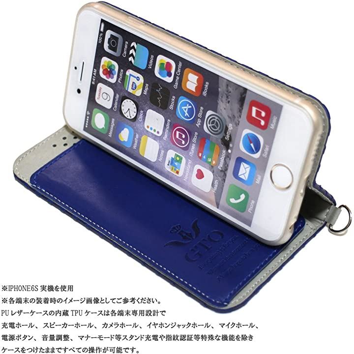 ケース 手帳型 カバー GTOお洒落な2トーンカラー オリジナルハンドストラップ付2点セット PUレザー&アンチグレアTPUケースを使用した手帳型PUレザーケース ブルー