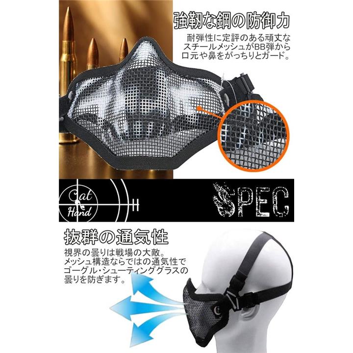 フェイスマスク ハーフメッシュマスク サバゲー サバイバルゲーム エアガン 2バンド 式 フェイスガード
