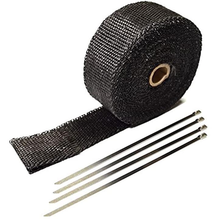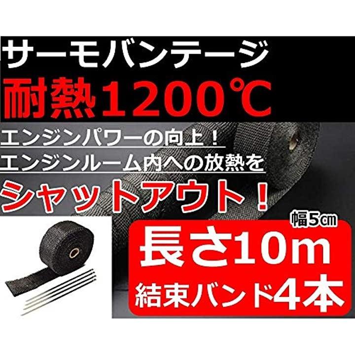 互換品バイクマフラー サーモ バンテージ 耐熱布 テープ 1200度 黒 ブラック