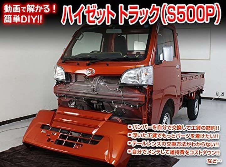 ・ルームランプ交換方法、ライト交換方法・ フロント(リア)バンパー交換方法・内張り交換方法などなど、ハイゼット トラック(S500P) の 各種パーツの取外し方法や取付け方法、改造やチューニングを解説したDVD。