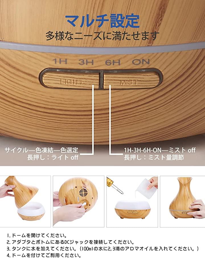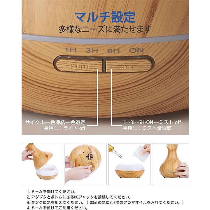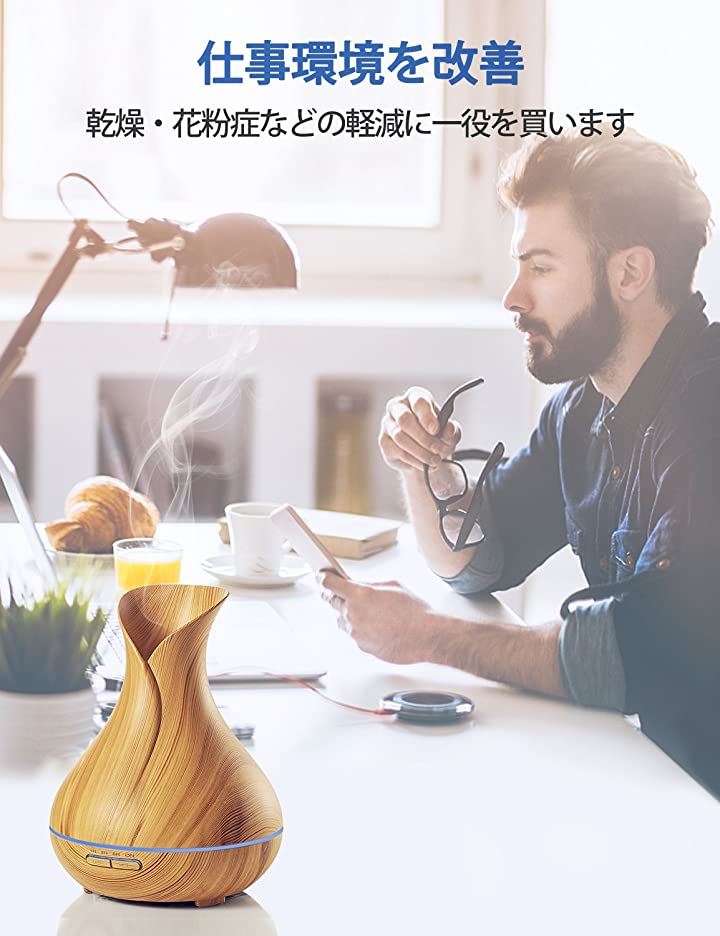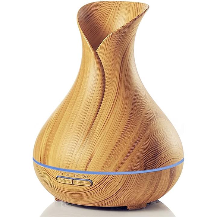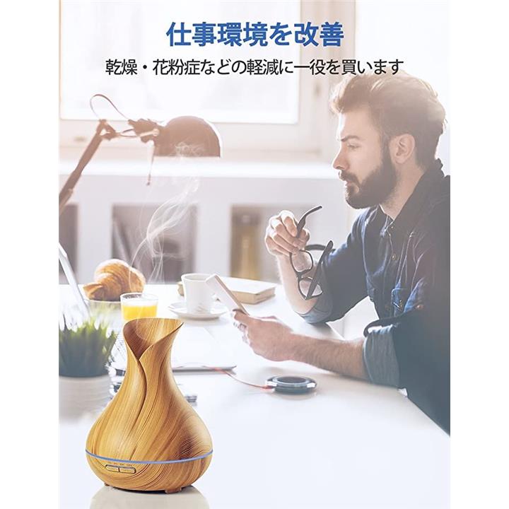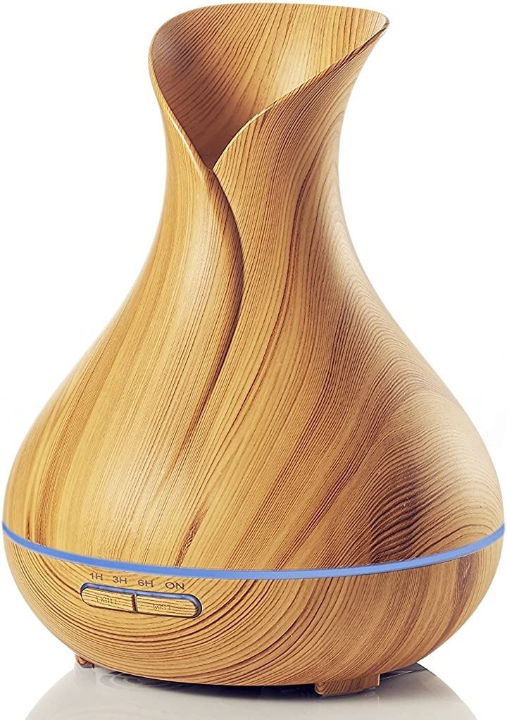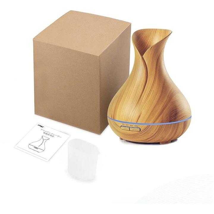 e's Vase 超音波式卓上加湿器 アロマディフューザー 400ml お洒落な木目調インテリア・タイプ 空焚き防止機能 タイマー機能 静音/乾燥 T11-EN1522