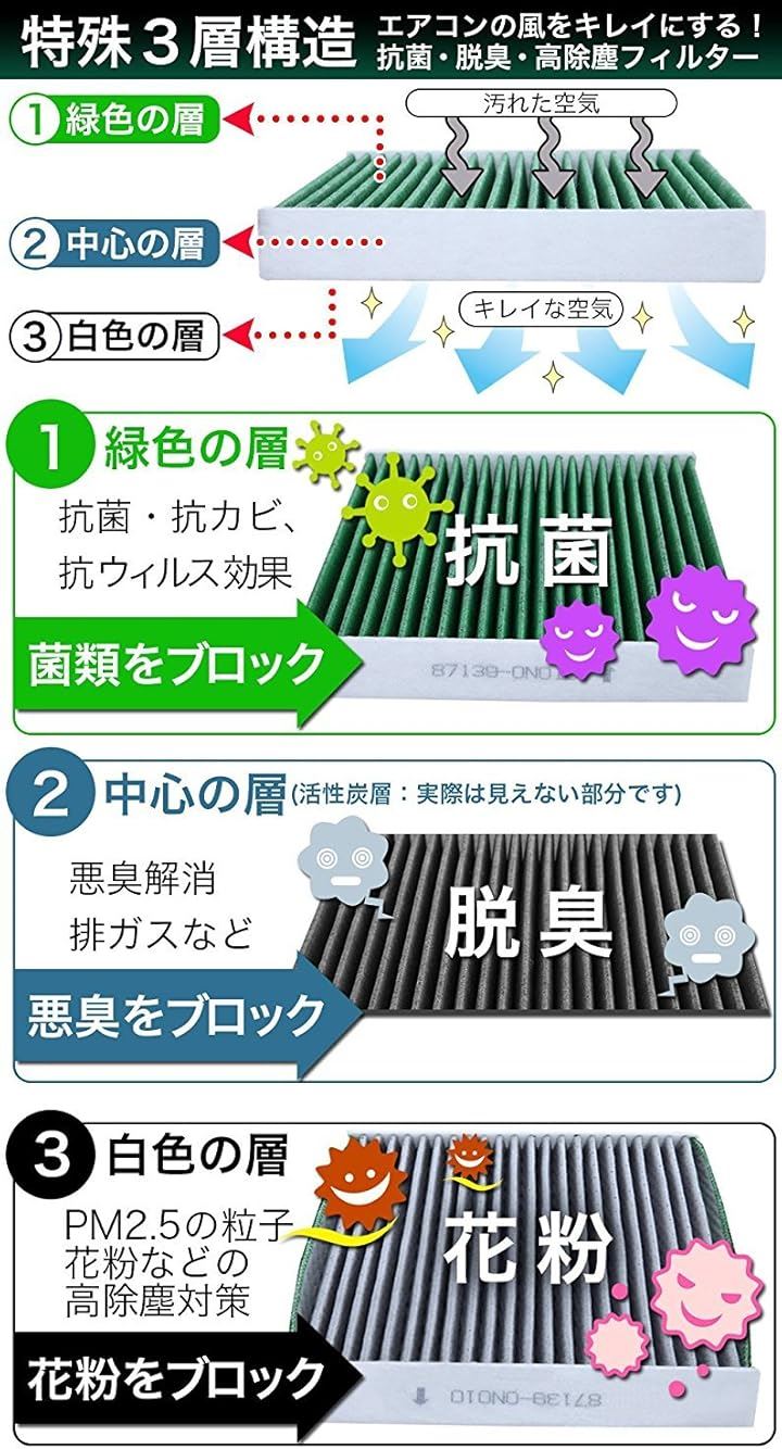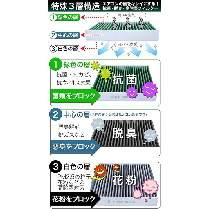 互換品製 特殊3層構造&活性炭入り ホンダ車用 フィット フィットハイブリッド ヴェゼル フリード フリードハイブリッド フリードスパイク インサイト CR-Z 等 交換用 エアコンフィルター PM2.5除去 ウィルス 排ガス 抗菌 抗カビ をブロックの高機能