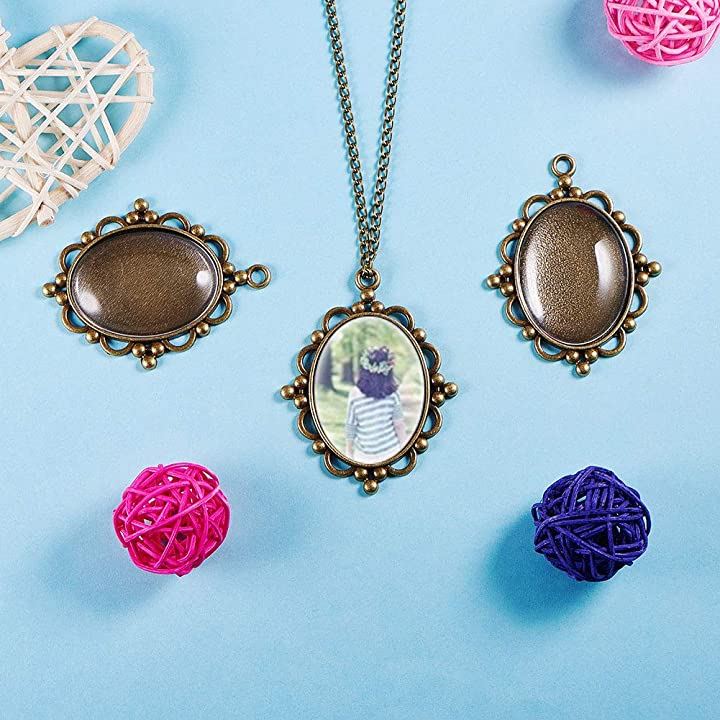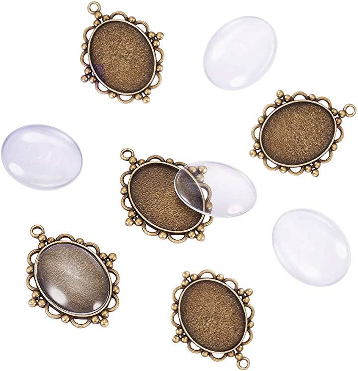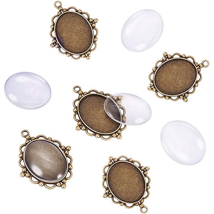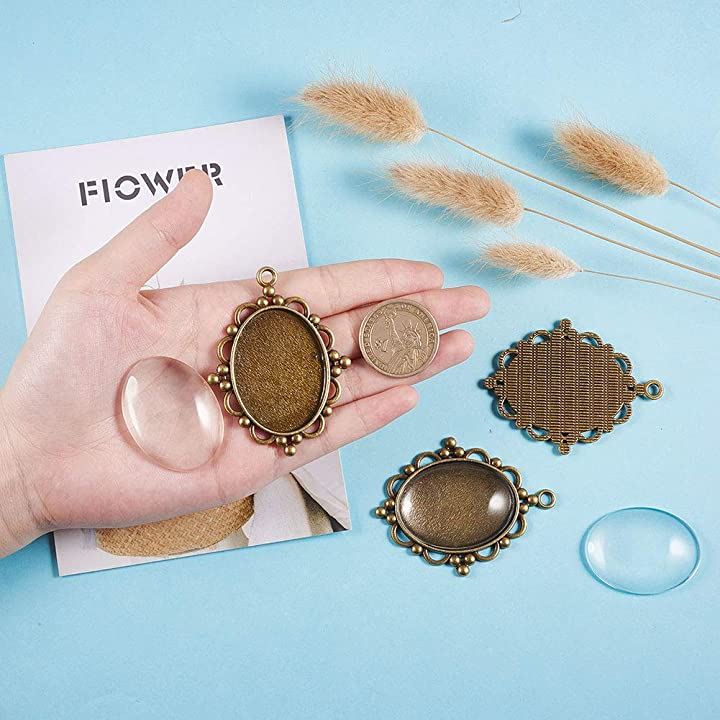 PandaHall 40x30mm クリア ガラス カボション と ミール皿 5セット 楕円形 ペンダント