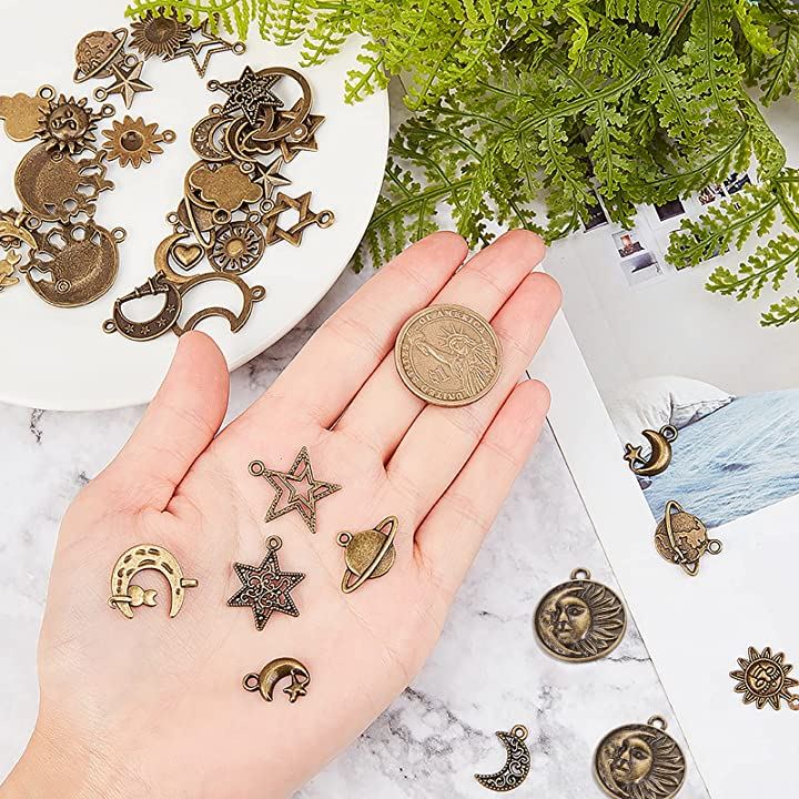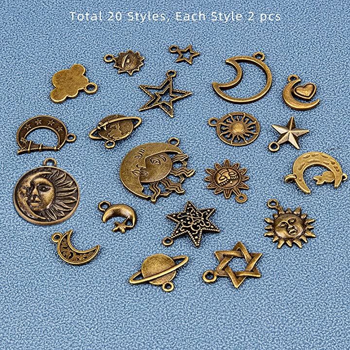 約40個/箱 20種 合金 ペンダント チャーム 銀河シリーズ 星柄 月柄 太陽柄 曇柄 チャーム星