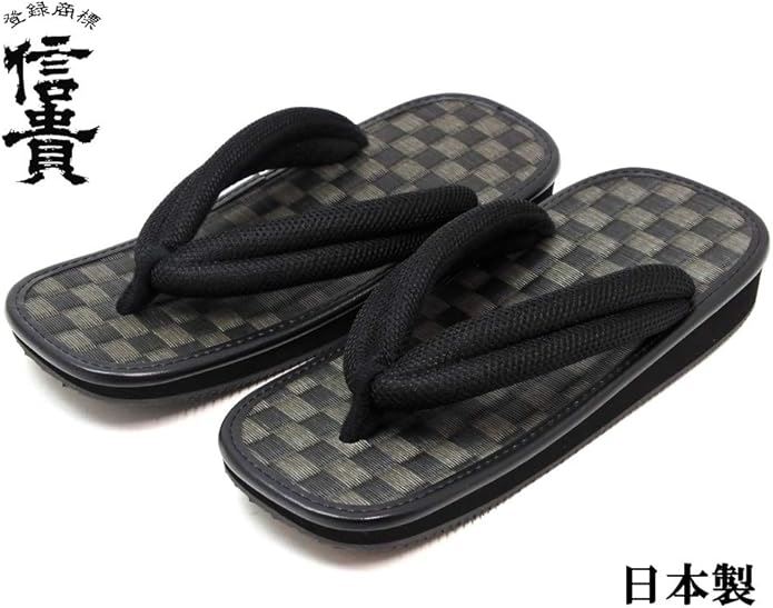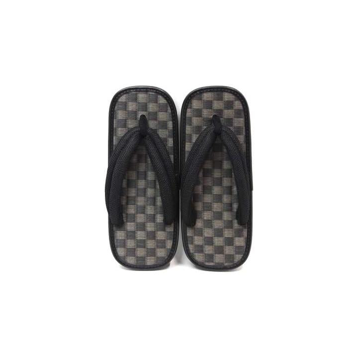 男性用 雪駄 草履 市松 黒畳 メッシュ鼻緒 ゴム底 日本製 32-stk-1 ブラック 9寸