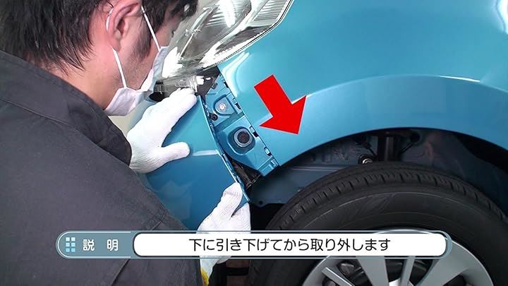 パッソ M700A DVD 収録内容:*外装関連 01.フロントバンパー取り外し方法 02.リアバンパー取り外し方法 03.ヘッドライトユニット取り外し方法 04.テールライトユニット(リアランプ類)取り外し方法 05.ヘッドライトランプ(ロー・ハイ)取り外し方法 06.フロントポジションランプ取り外し方法 07.フロントウィンカーランプ取り外し方法 08.サイドマーカー取り外し方法 09.ハイマウントストップランプ取り外し方法 10.ライセンスランプ取り外し方法 11.サイドミラー取り外し方法 12.ホーン取り外し方法 13.ワイパー(ゴム・ブレード)取り外し方法 14.エアクリフィルター取り外し方法 15.ヒューズ取り外し方法 16.バッテリーマイナス端子絶縁方法 17.バッテリー取り外し方法