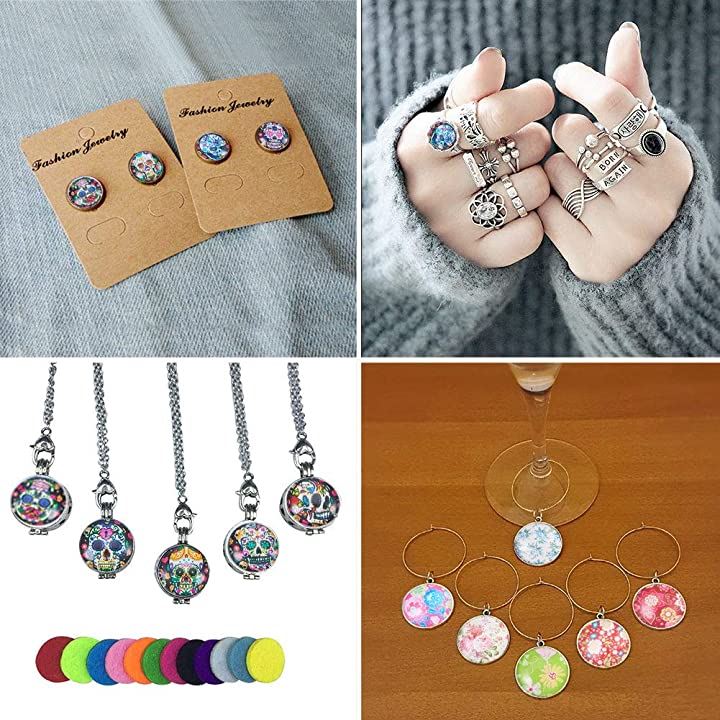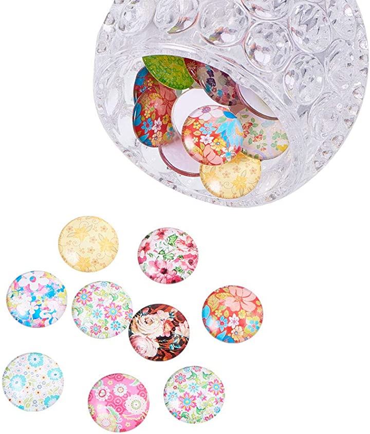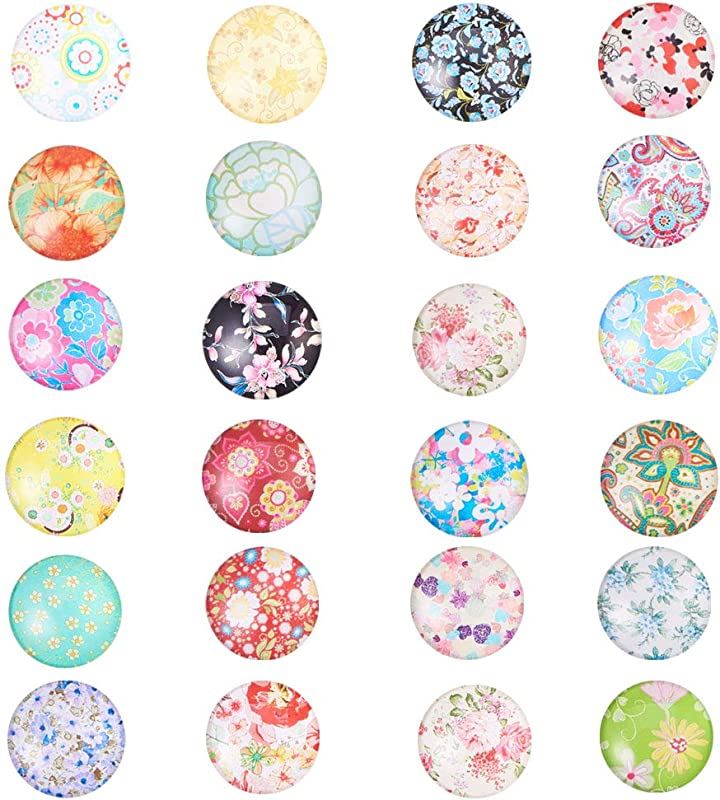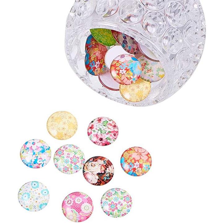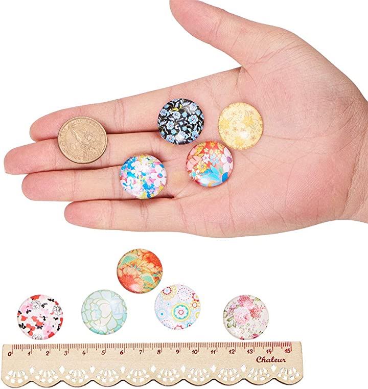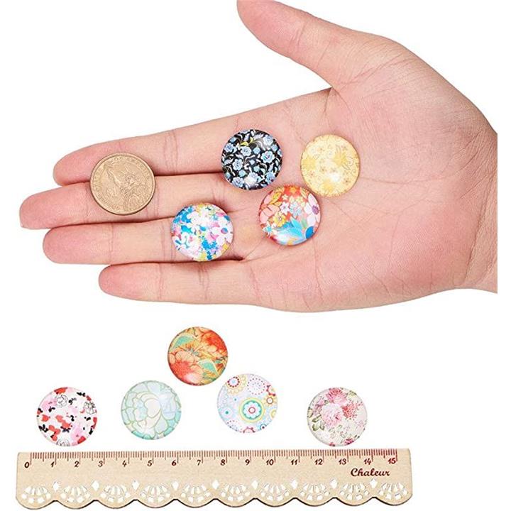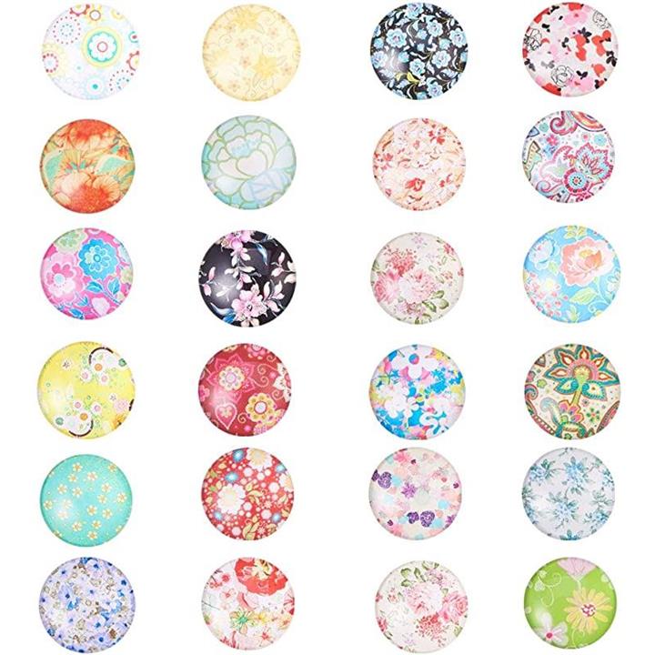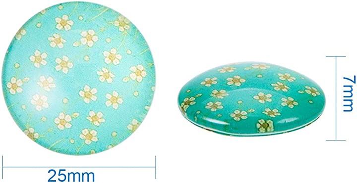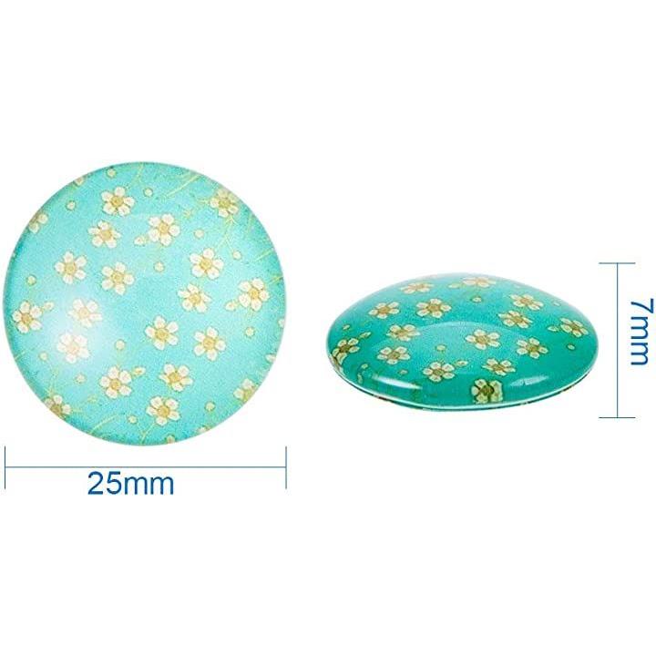 PandaHall ミックス 50個セット 図案付き ガラス カボション ラウンド ビーズ スクエア 25x7mm
