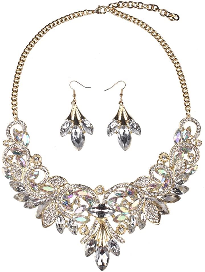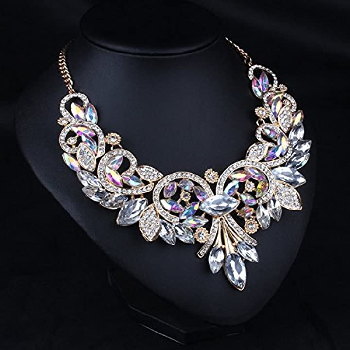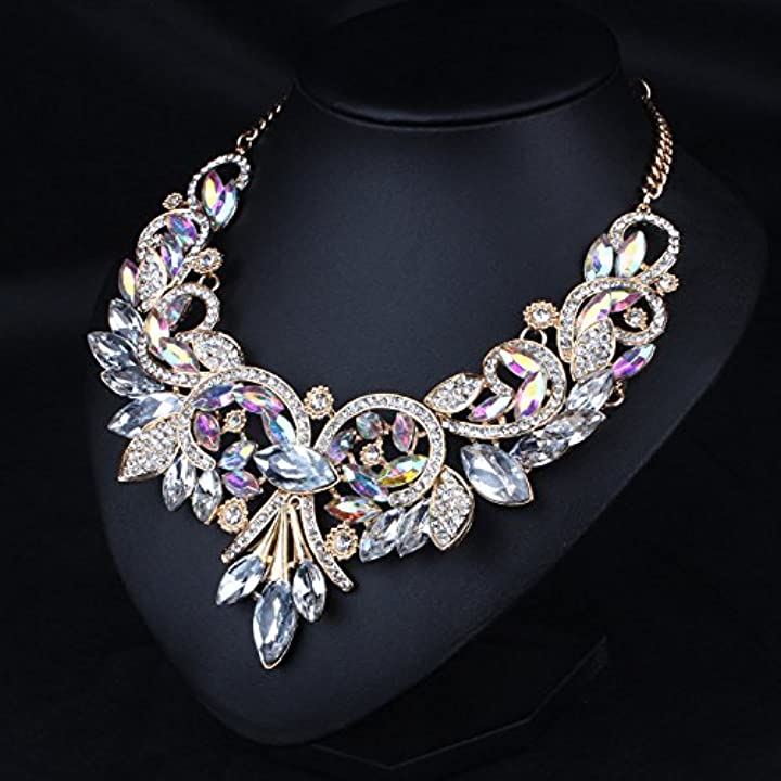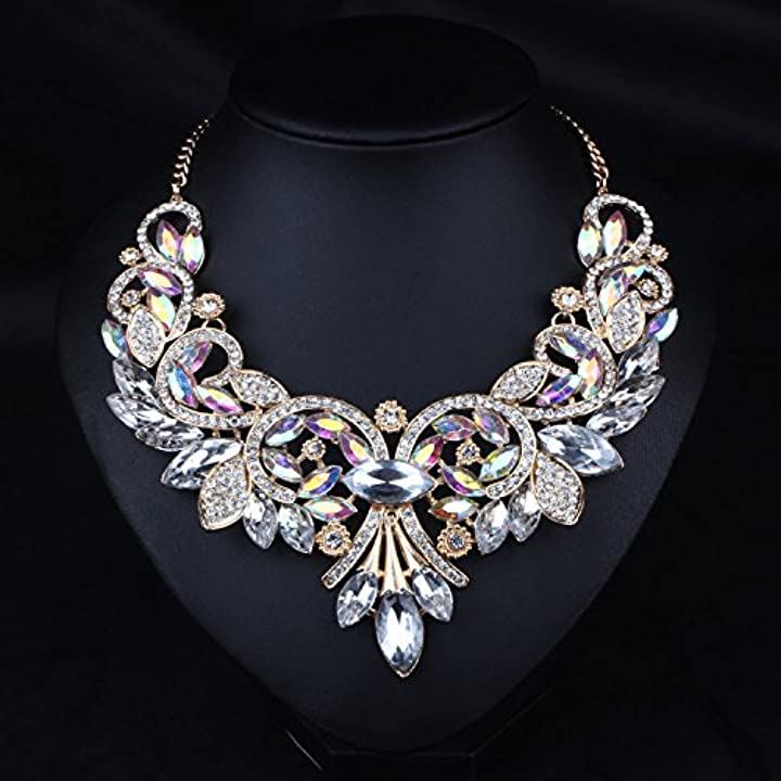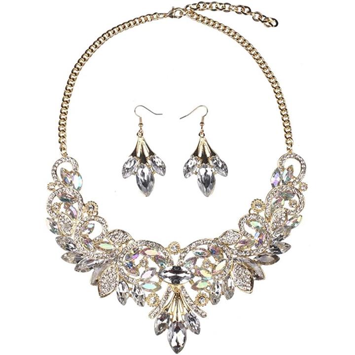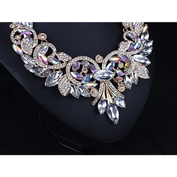 欧米風フラワー クリスタル ネックレス ピアス セット white
