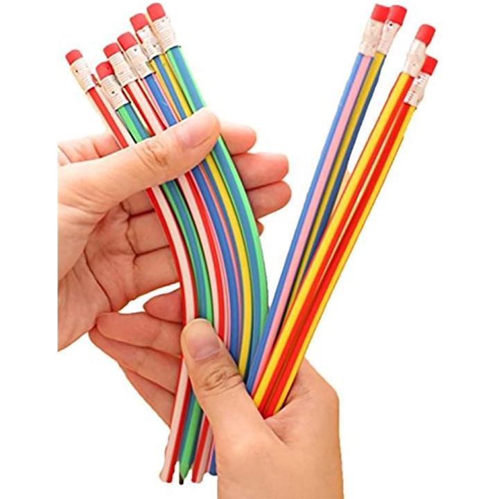 曲がる 鉛筆 芯が折れない おもしろ 文房具 えんぴつ ストライプ カラー 5色 セット