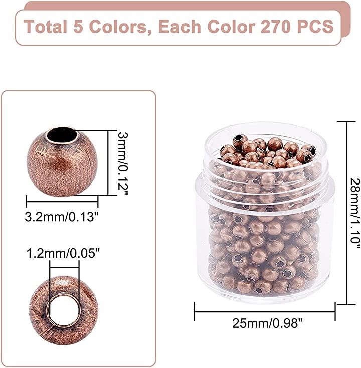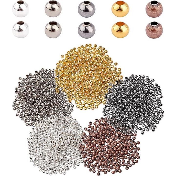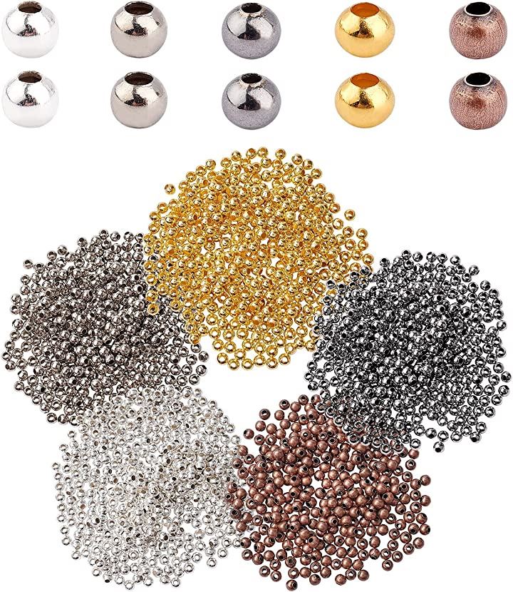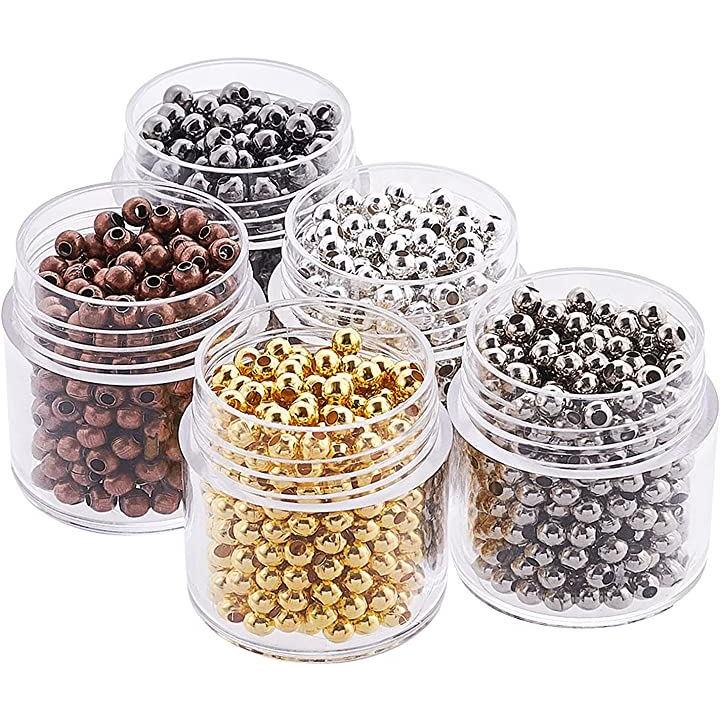 PandaHall 約270個/箱 5箱/セット 3mm メタル ビーズ 丸玉 ラウンド 大穴 金属 パーツ ジュエリー DIY用 手芸用品 クラフト用品 ハンドメイド 手作り素材 5色