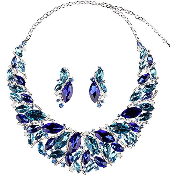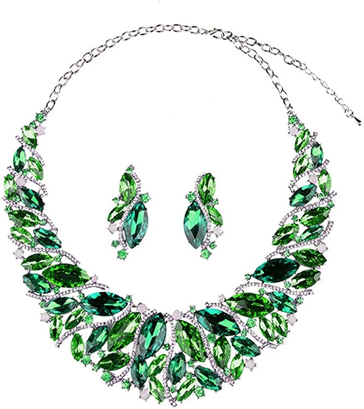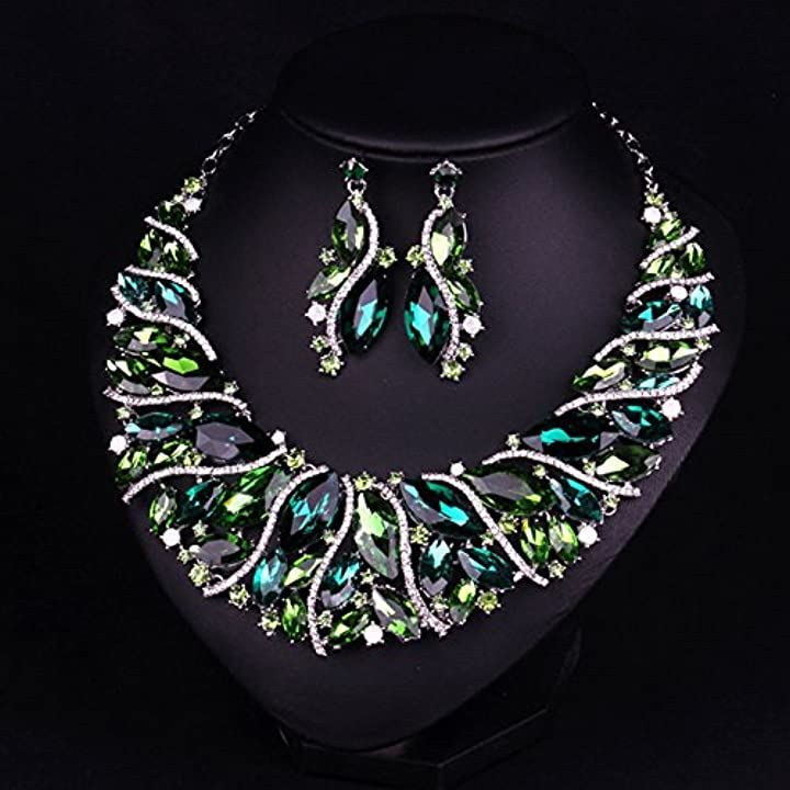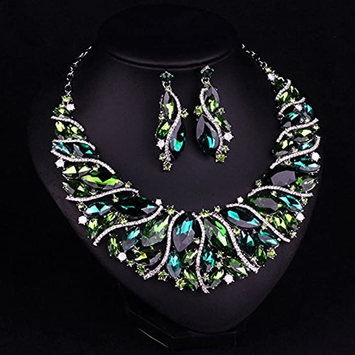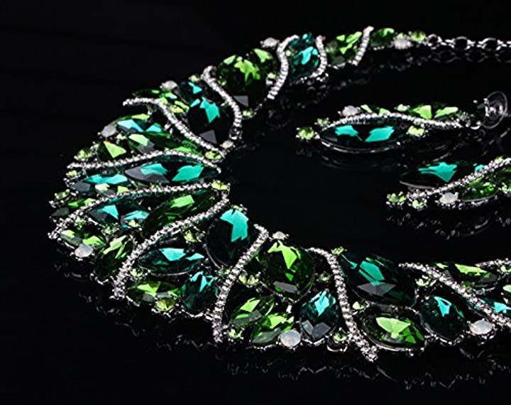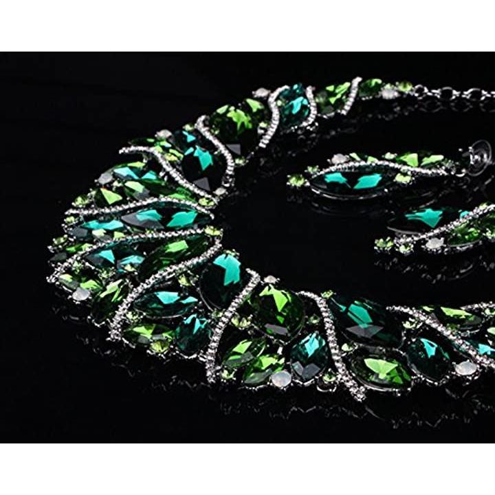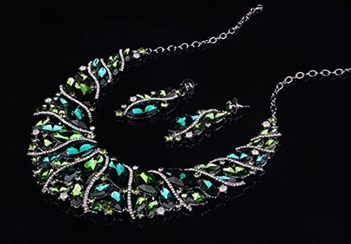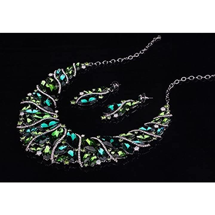 クリスタル ゴージャス ピアス ネックレス セット クリア シルバートーン green