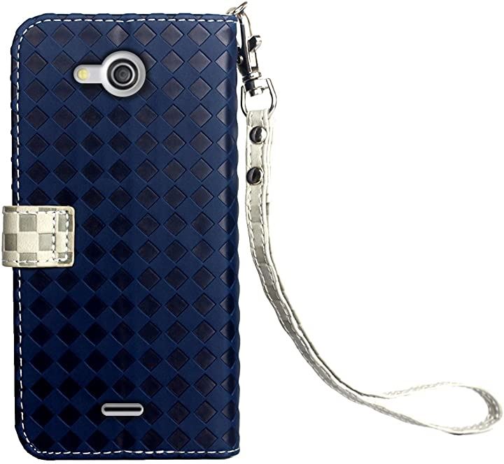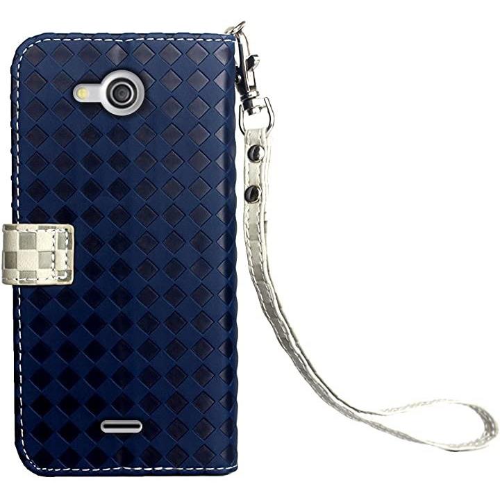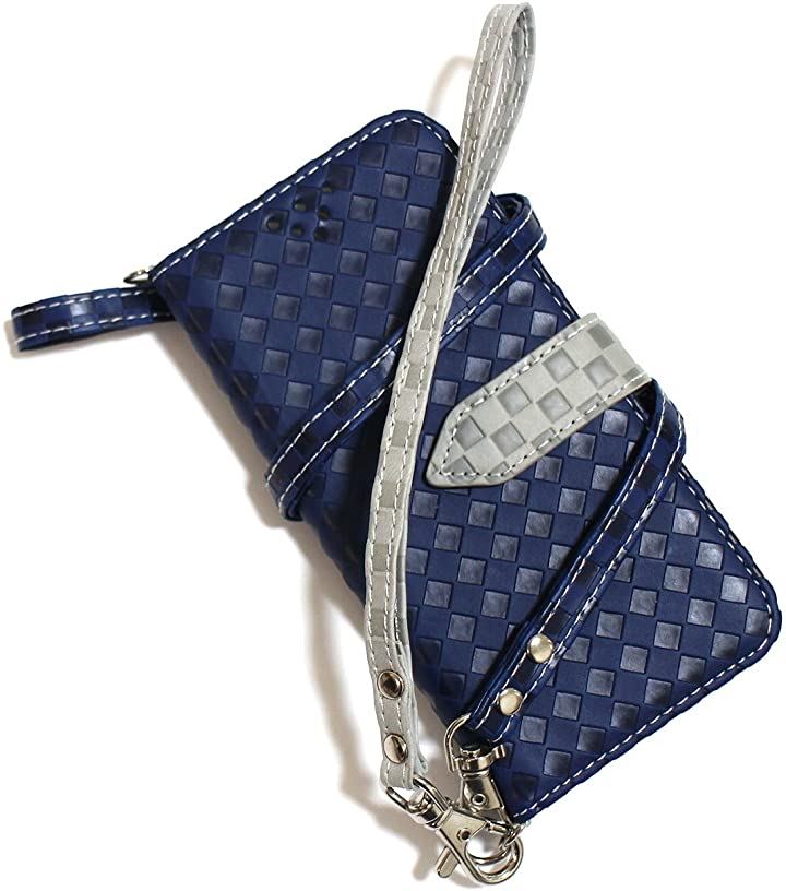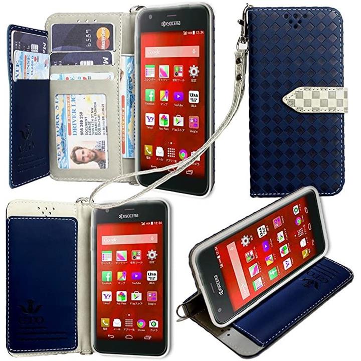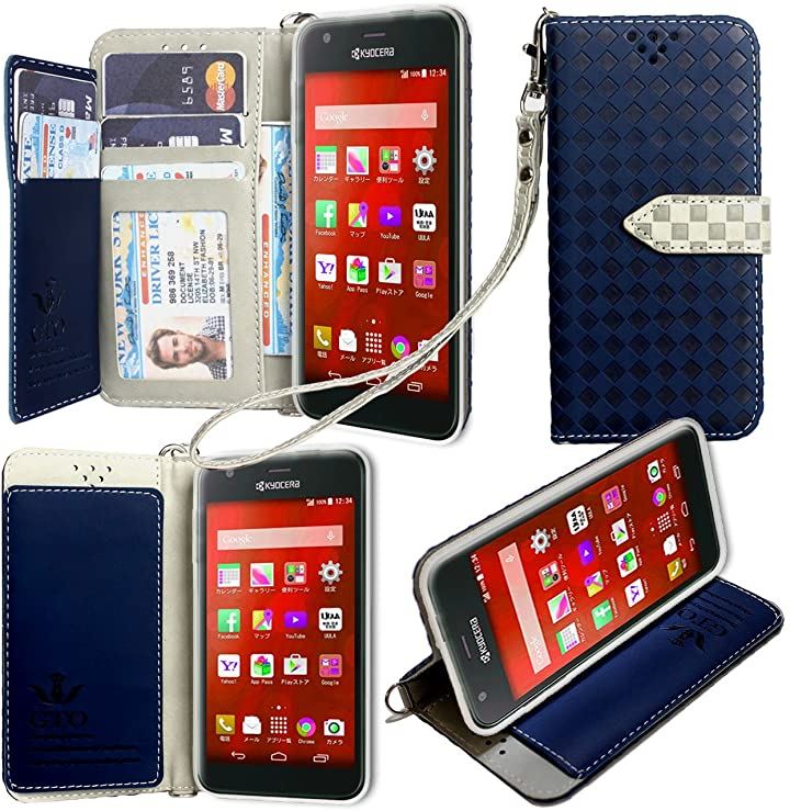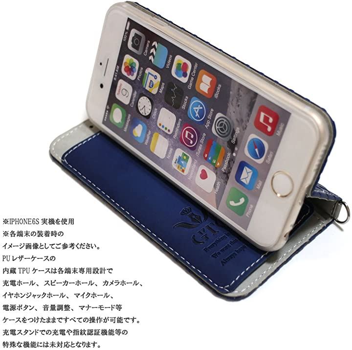 ストラップ2本付GTO ケース 手帳型 カバー 手帳型 お洒落な2トーンカラー オリジナルハンドストラップ&ネックストラップ付 3点セット PUレザー&アンチグレアTPUケースを使用した手帳型PUレザーケース ネイビー |