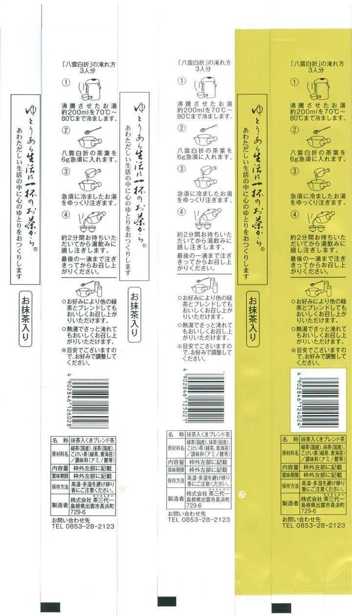 抹茶入り八雲白折 赤印・銀印・金印 135g x 3本詰合せ ご自宅用
