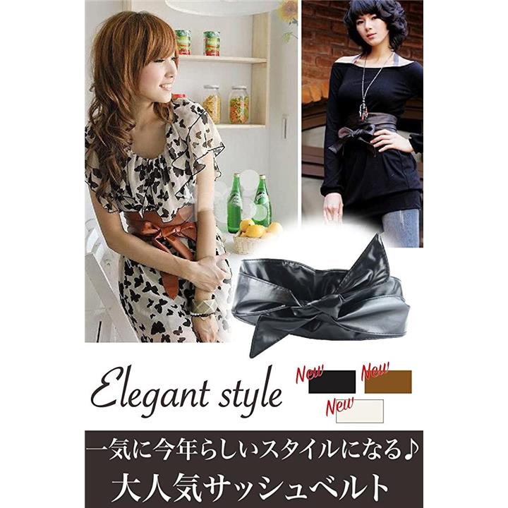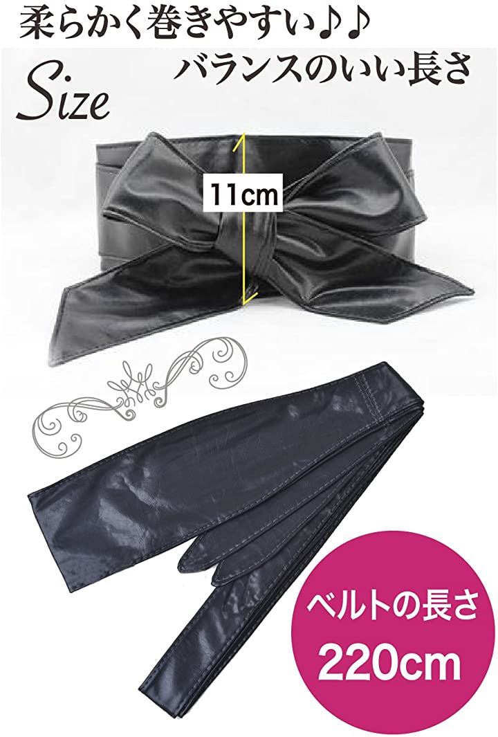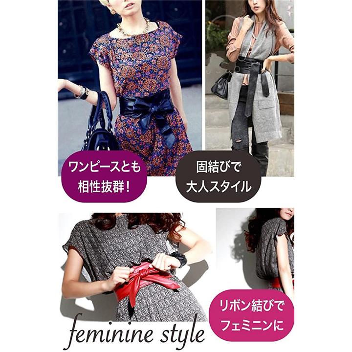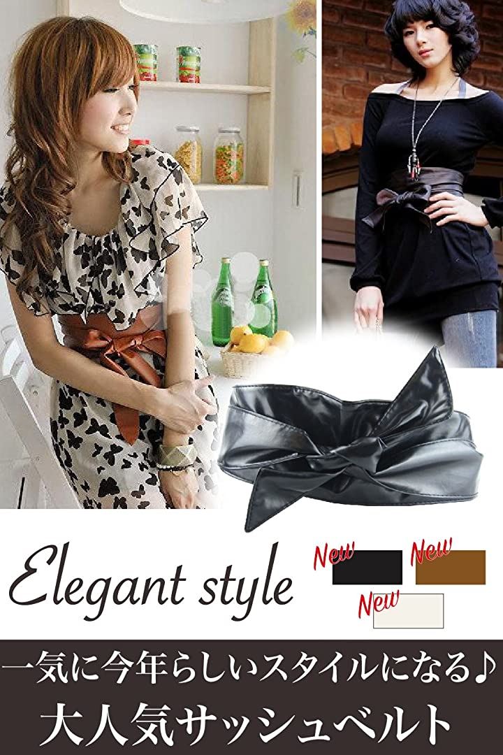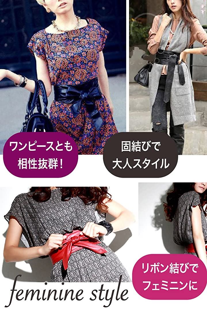 サッシュベルト リボン結び ウエスト 幅広ベルト フェイクレザー レディース