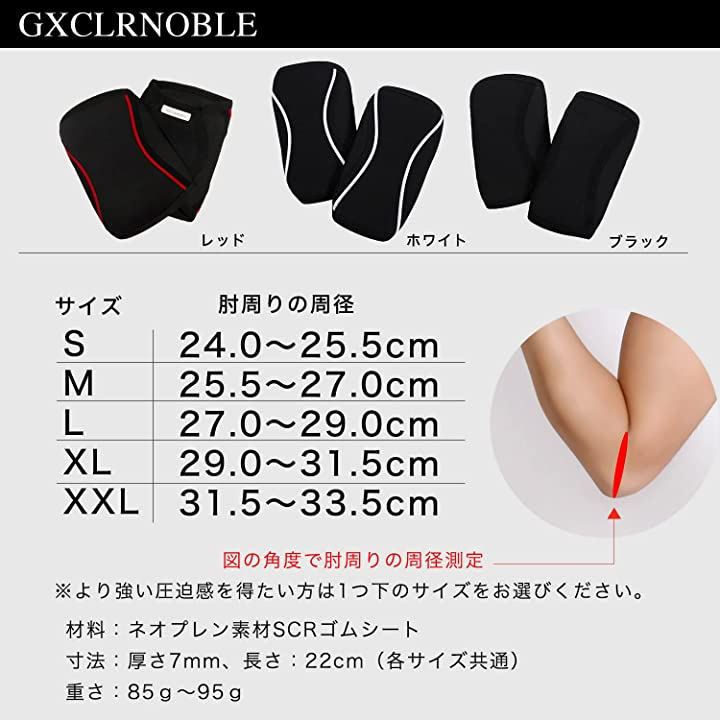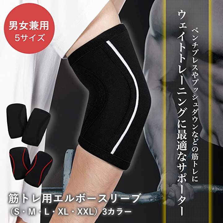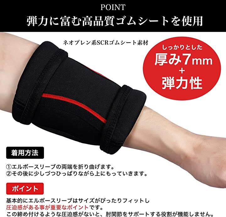 7mm エルボースリーブ 筋トレ エルボーサポーター 肘サポーター ウエイトトレーニング ベンチプレス スポ-ツ ケガ防止 左右セット
