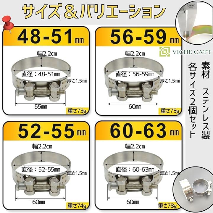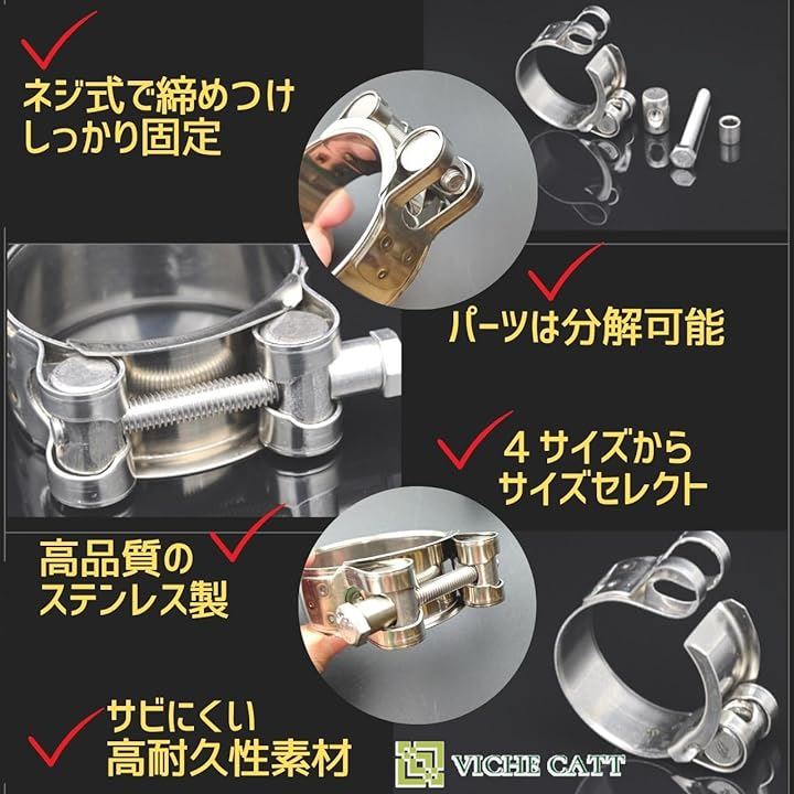 マフラーバンド ステンレス製 2個セット サイレンサー パイプクランプ ボルト 固定