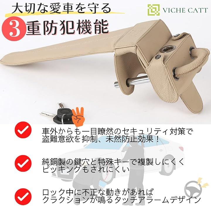 ハンドルロック 車 防犯グッズ 車盗難防止グッズ ステアリングロック キーケース付き 幅広い車種に対応