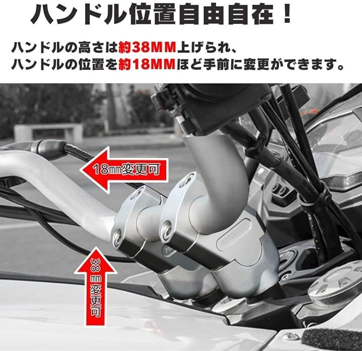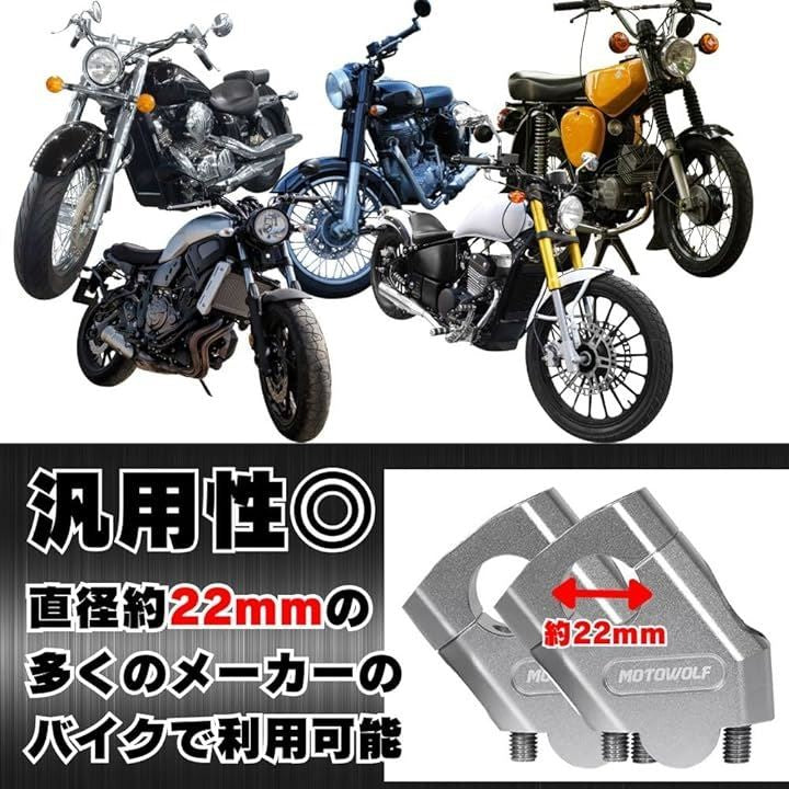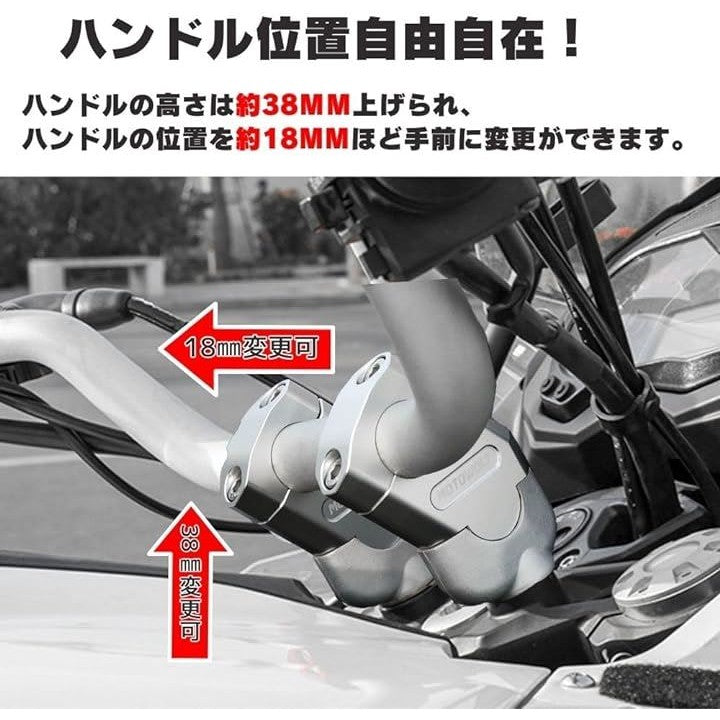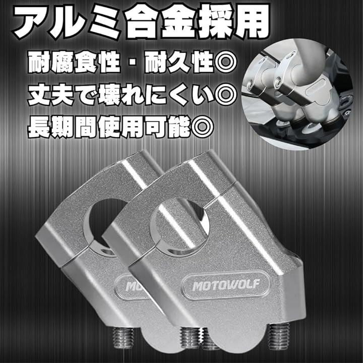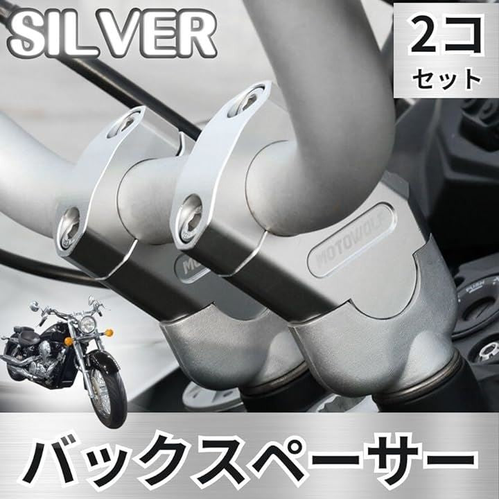 バイク 22mm ハンドルバー用 バックスペーサー キット 2個 セット CNC アルミ クランプ 銀