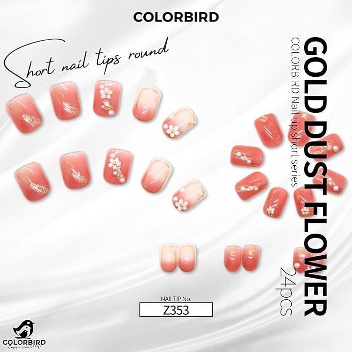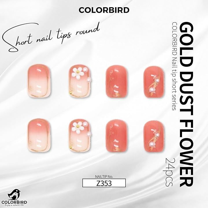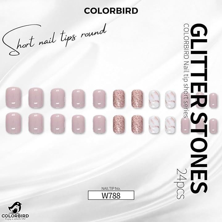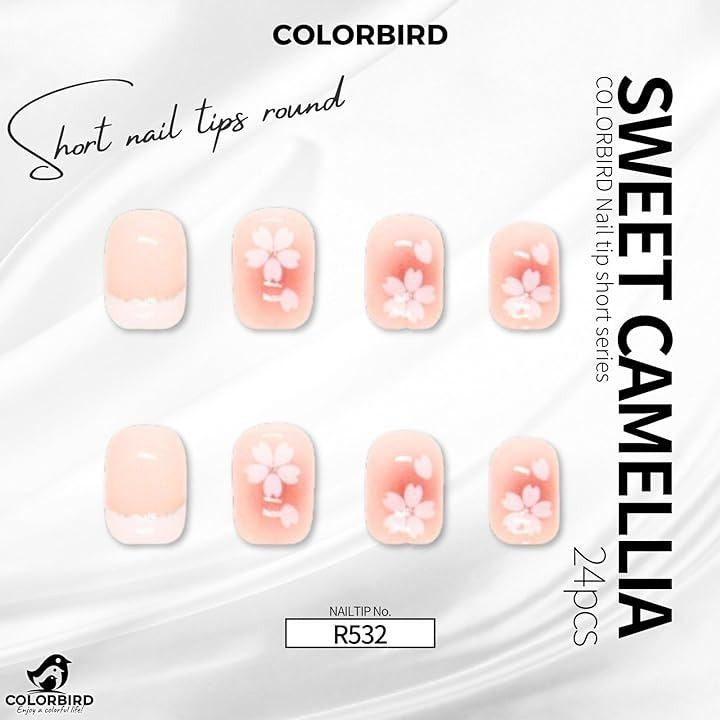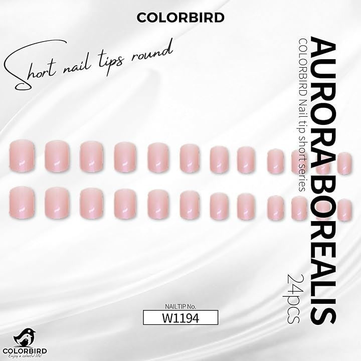COLORBIRD ネイルチップ ショート 24枚 ピンク ネイル 付け爪 チップ 短め 可愛い スクエアオフ (W1231) |