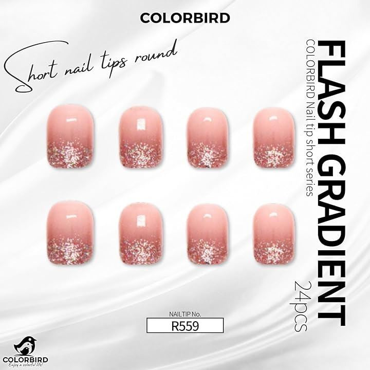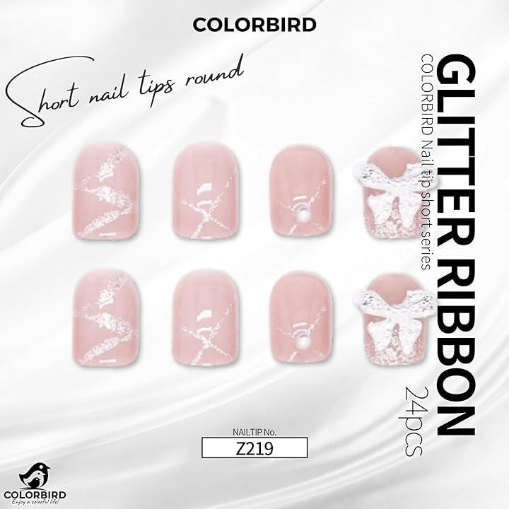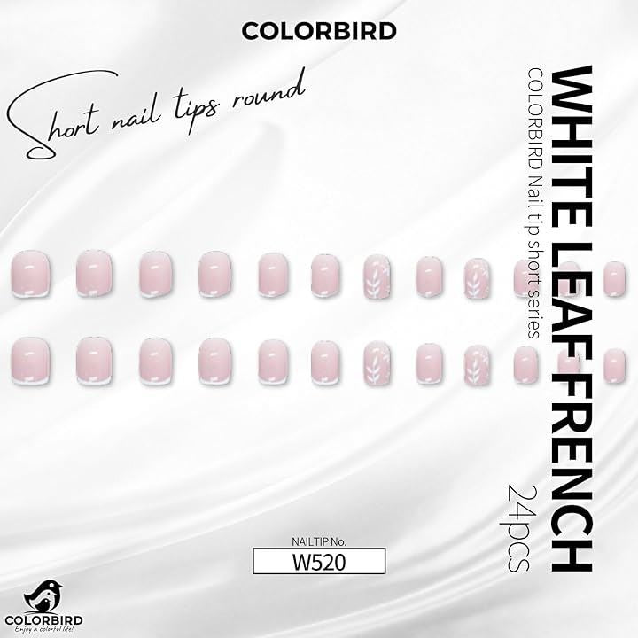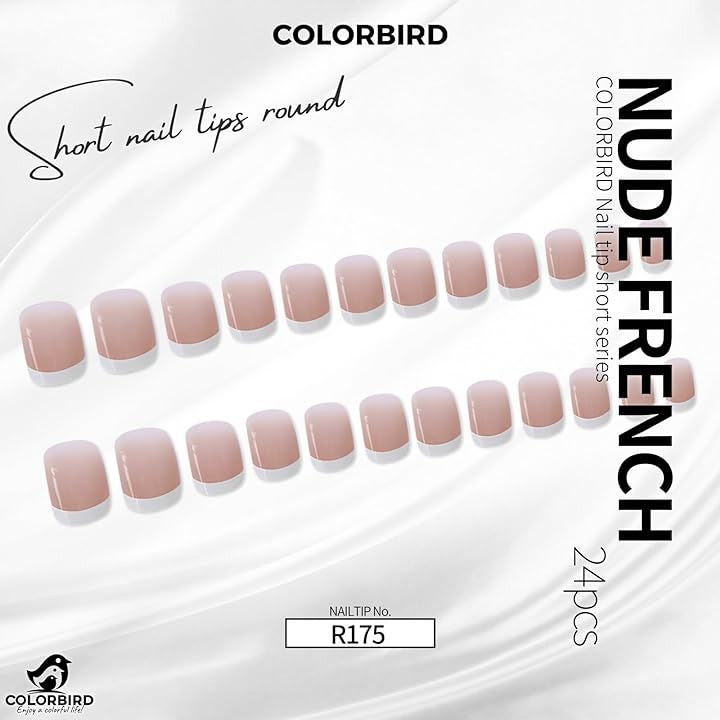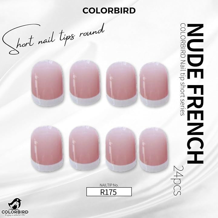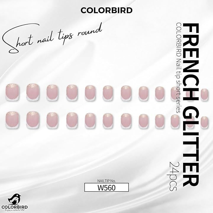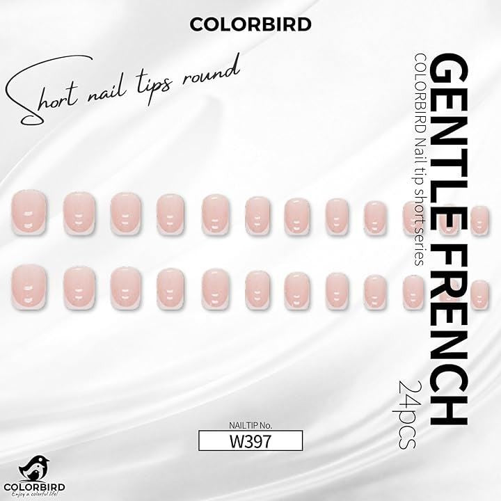 COLORBIRD ネイルチップ ショート 24枚 ピンク フレンチネイル ネイル 付け爪 チップ 短め 可愛い スクエアオフ (R868) |