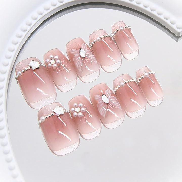 ネイルチップ ショート 24枚 付け爪 チップ 短め 可愛い スクエアオフ(W1009) |