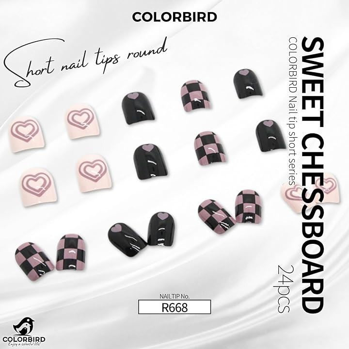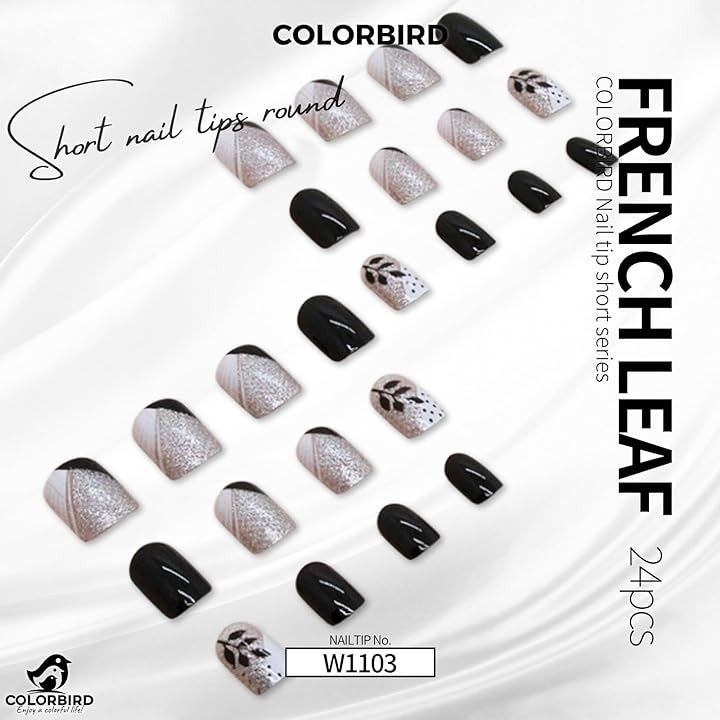COLORBIRD ネイルチップ ショート 24枚 黒 白 ネイル 付け爪 チップ 短め 可愛い スクエアオフ ラウンド (W1103) |