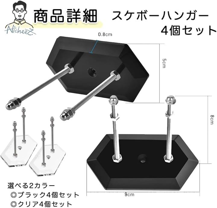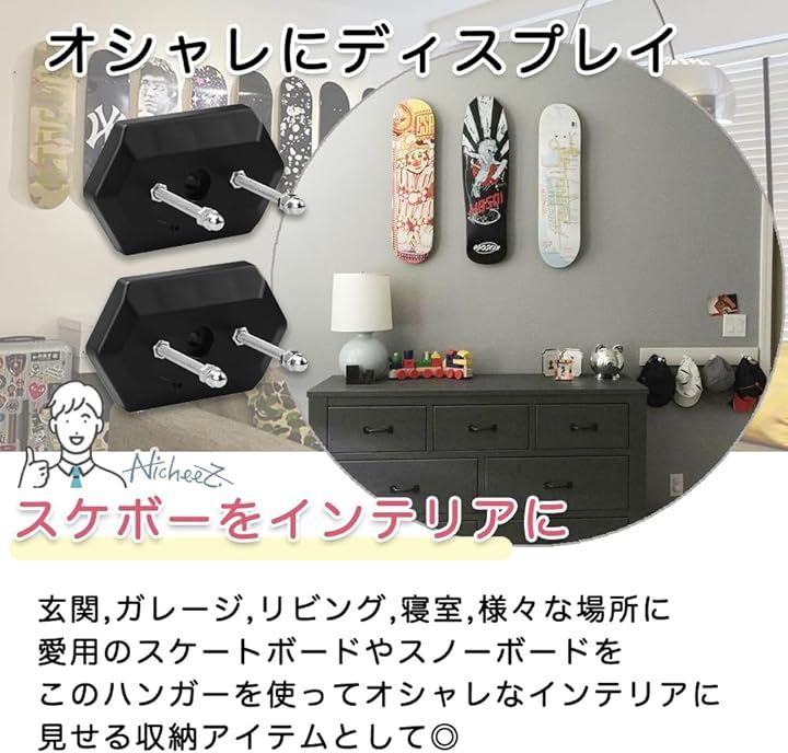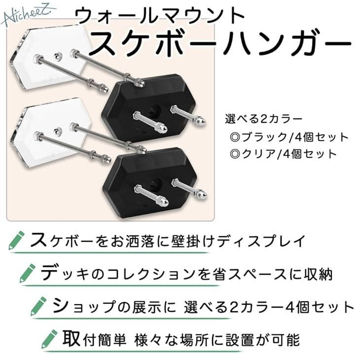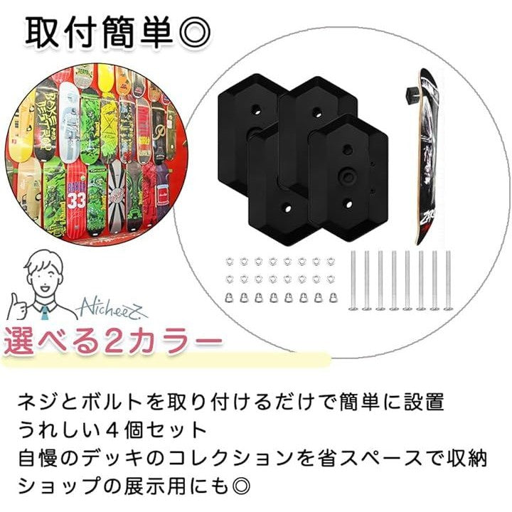 スケボー 壁掛け スケートボードハンガー ウォールマウント 4個セット