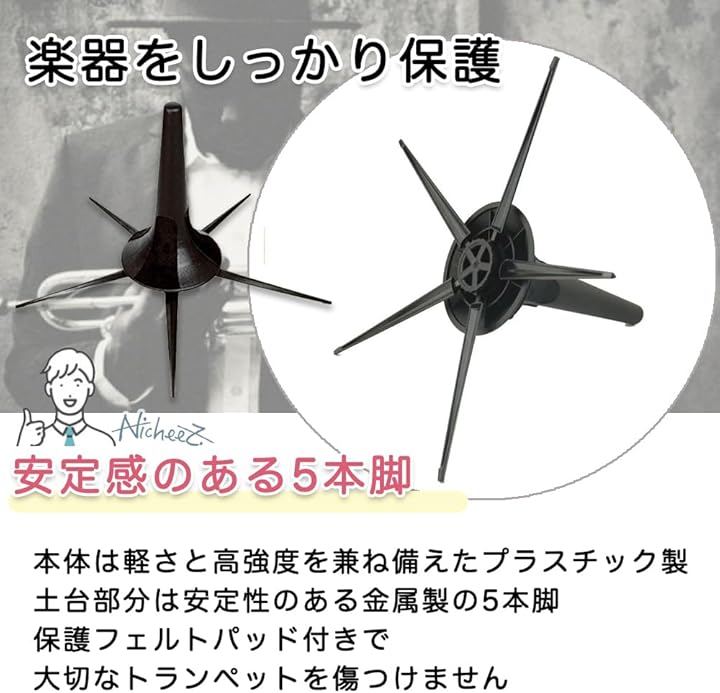 トランペットスタンド トロンボーン 立て 5本脚 安定性 折りたたみ式 コンパクト