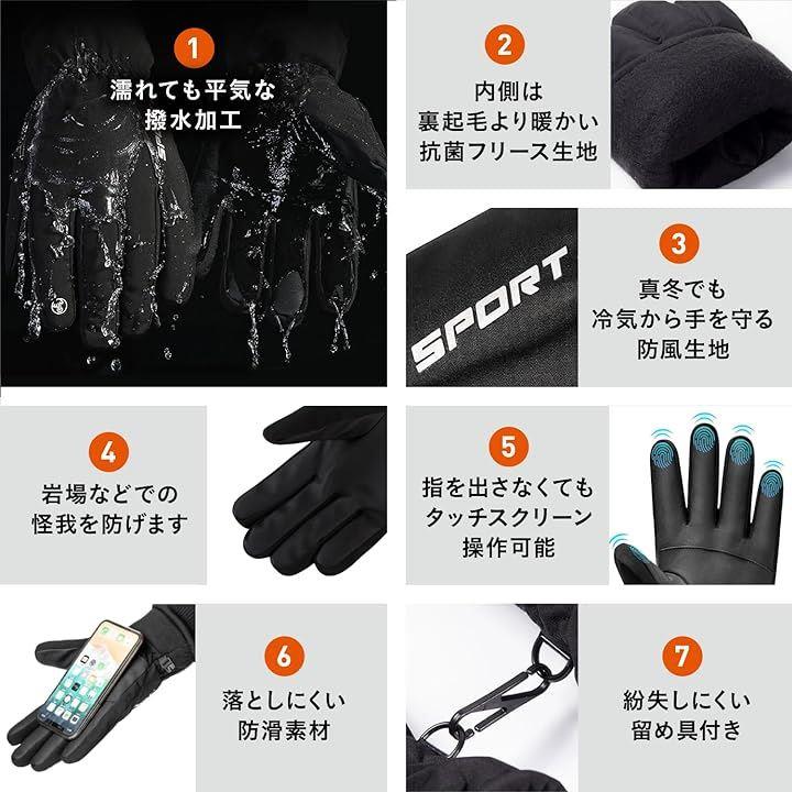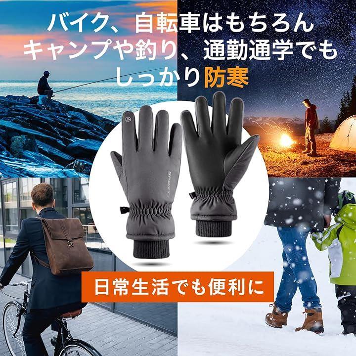 「互換品」アウトドアグローブ バイク 防寒グローブ スマホ対応 サイクリンググローブ 厚手 紛失防止結び付け |