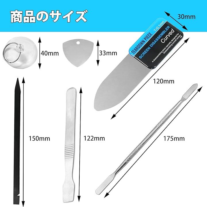曲面分解ツール 0.1mm 超薄 スパッジャー 携帯電話修理ツール スマホ 工具 キット ノートパソコン タブレットPC 修理工具 7点セット