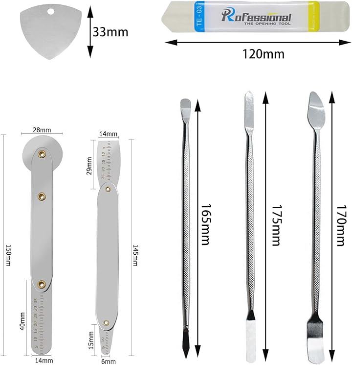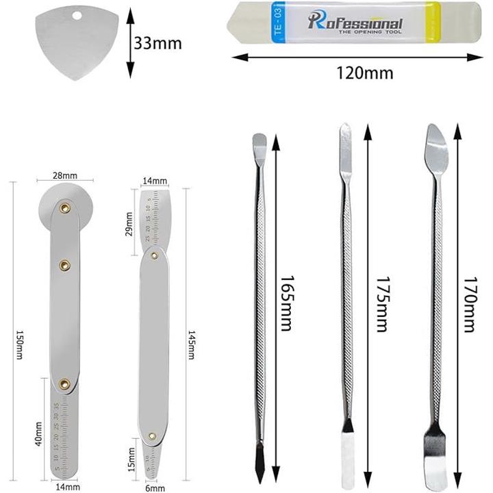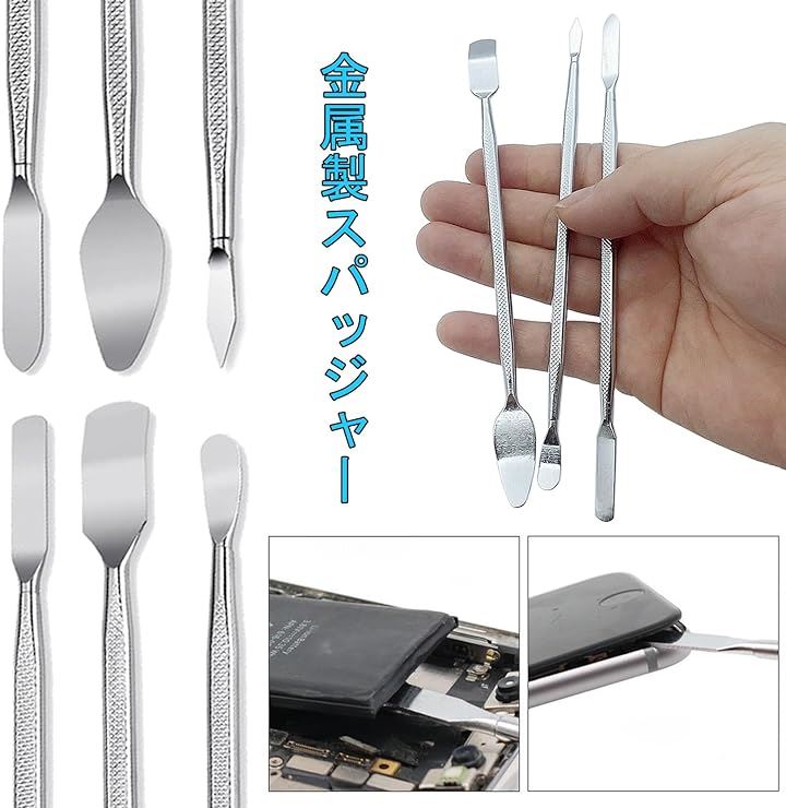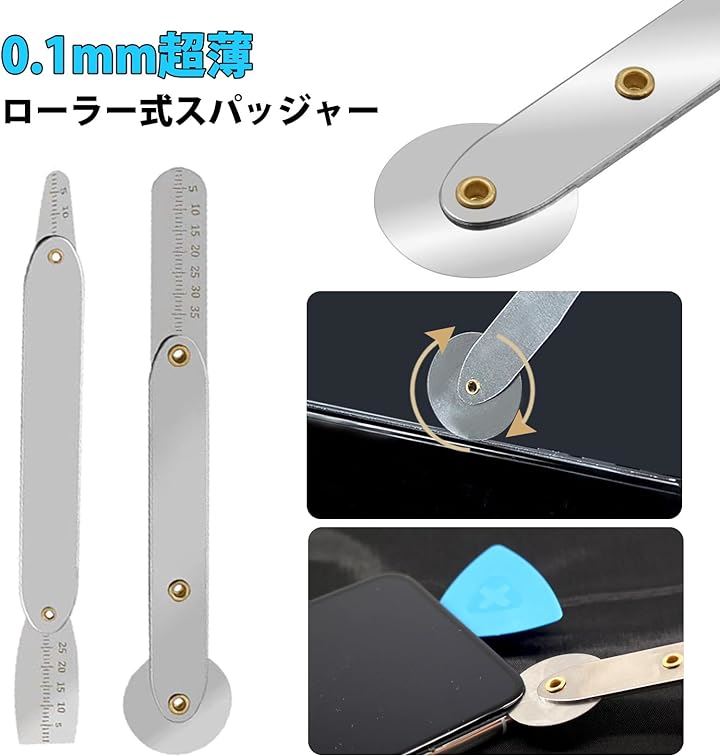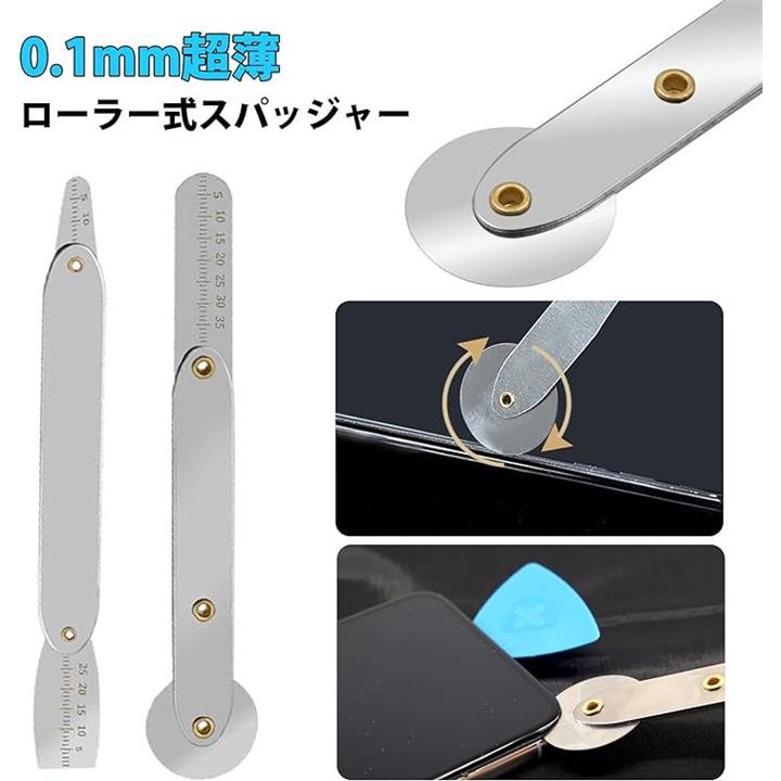 曲面分解ツール 0.1mm 超薄 スパッジャー 高精度 鮮明な目盛り 携帯電話修理ツール スマホ 工具 キット 修理工具 8点セット