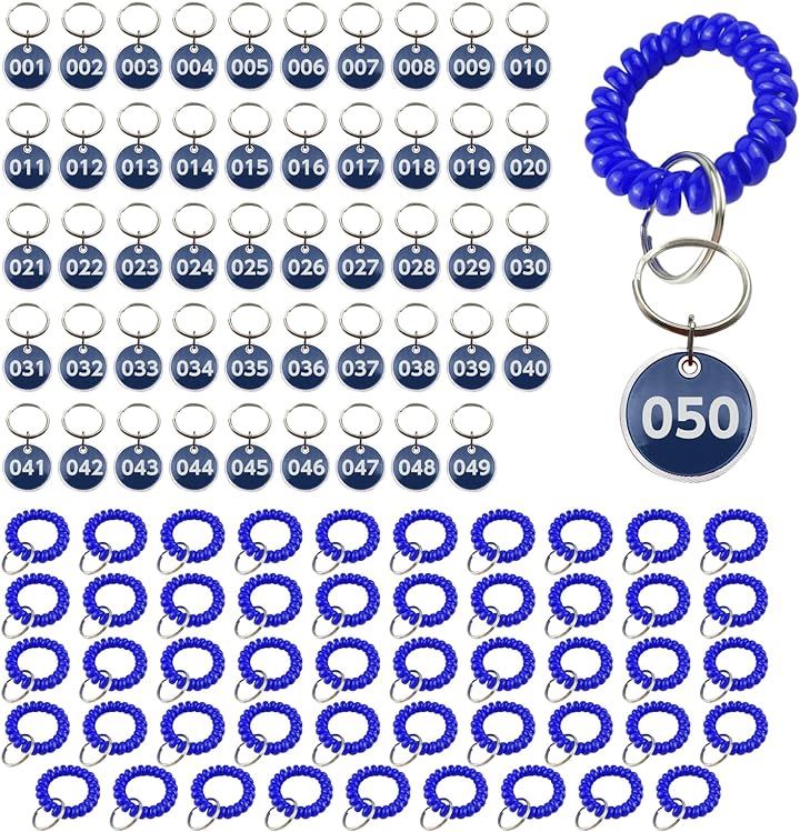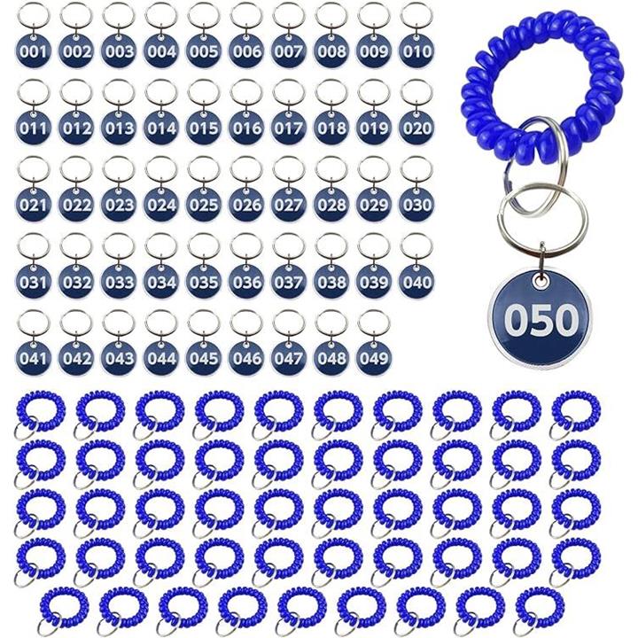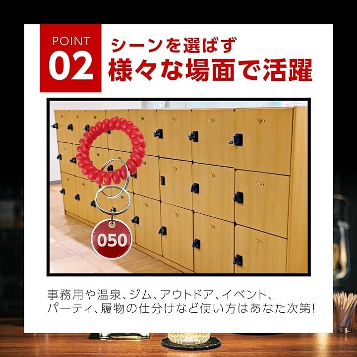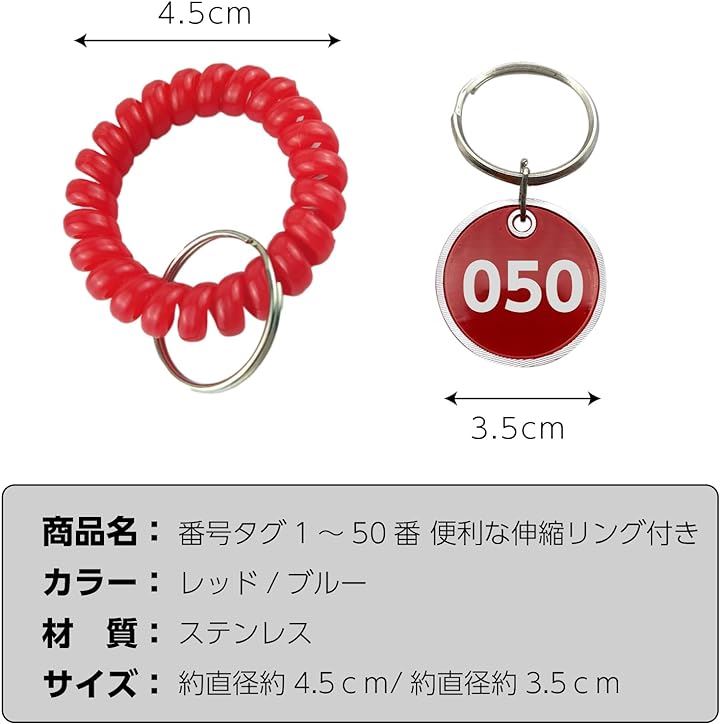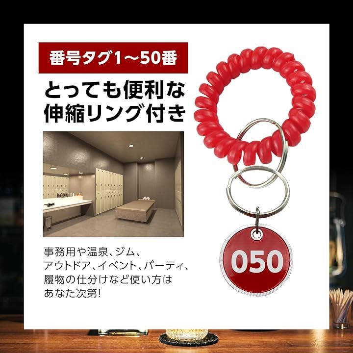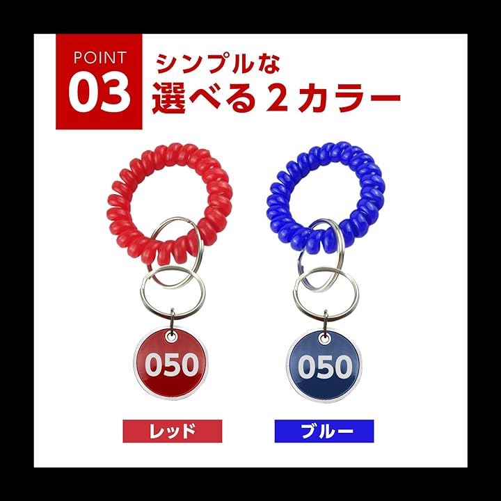 ドア番号タグ クローク ロッカー 番号札 ブレスレット 伸縮 コイル キーラベルタグ キーホルダ 男女兼用 1~50番