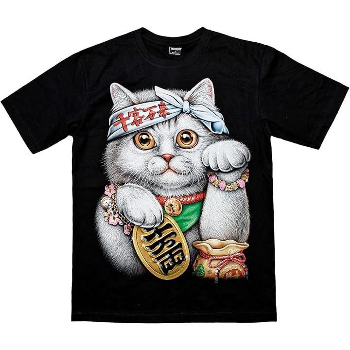 商売繁盛 招き猫 ネコ Tシャツ プリント 半袖 ユニセックス ねこ 小判 コットン 綿100