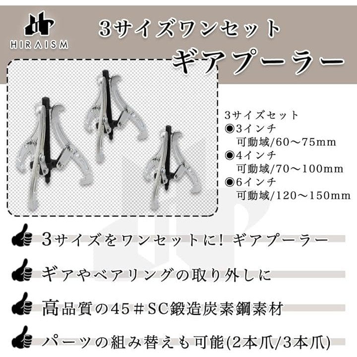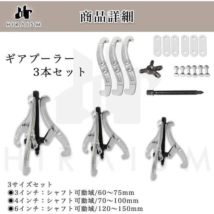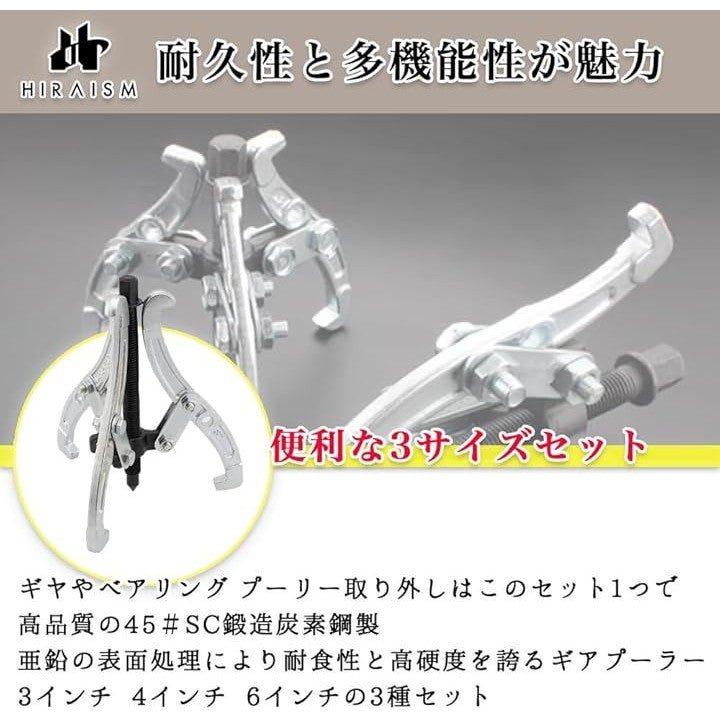 ギアプーラー 3本爪 プーリー 抜き ベアリング 外し 工具 75mm 100mm 150mm 3種 セット