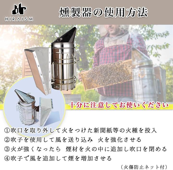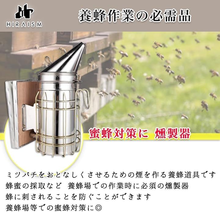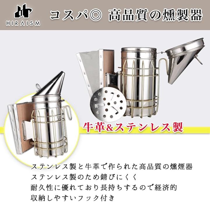 養蜂器具 烟熏器 燻煙機 噴煙器 ミツバチ 対策 高級 ステンレス製 牛革