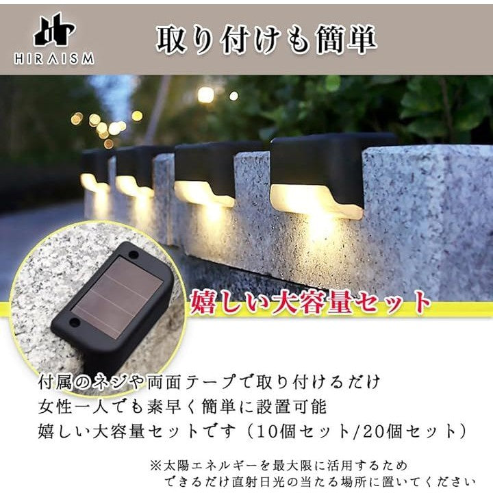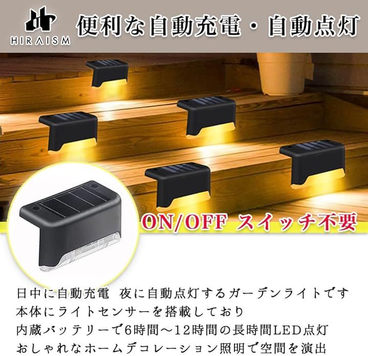 階段 ソーラーライト 屋外 防水 ガーデン フェンス 通路 キャンプ アウトドア おしゃれ 暖色 LED