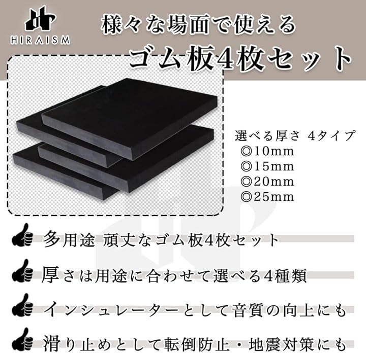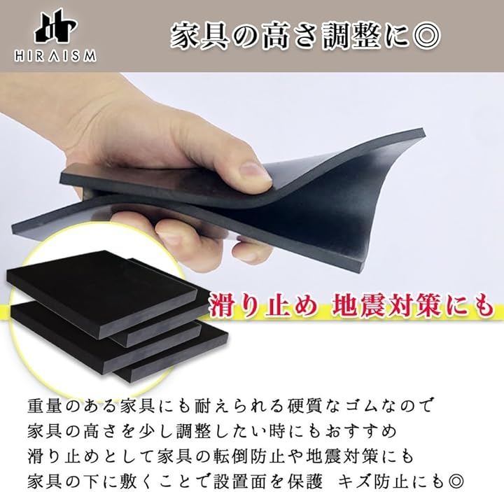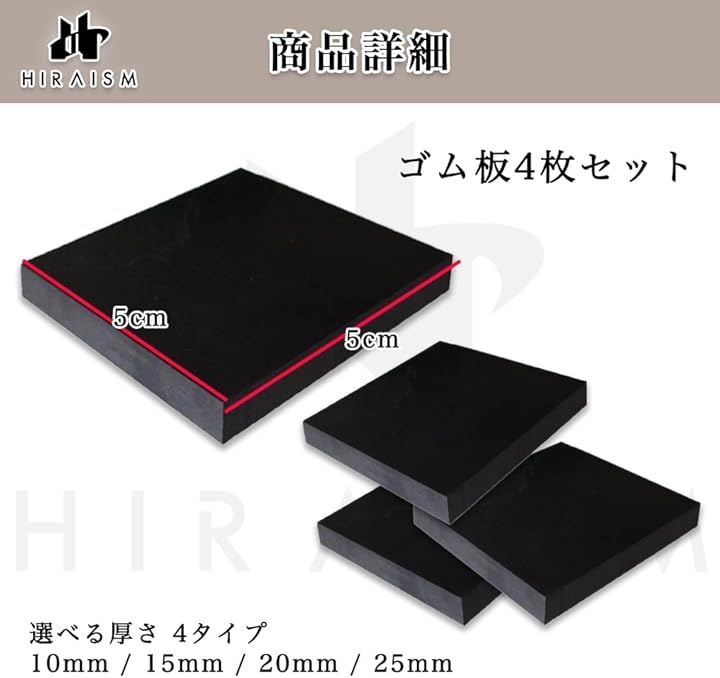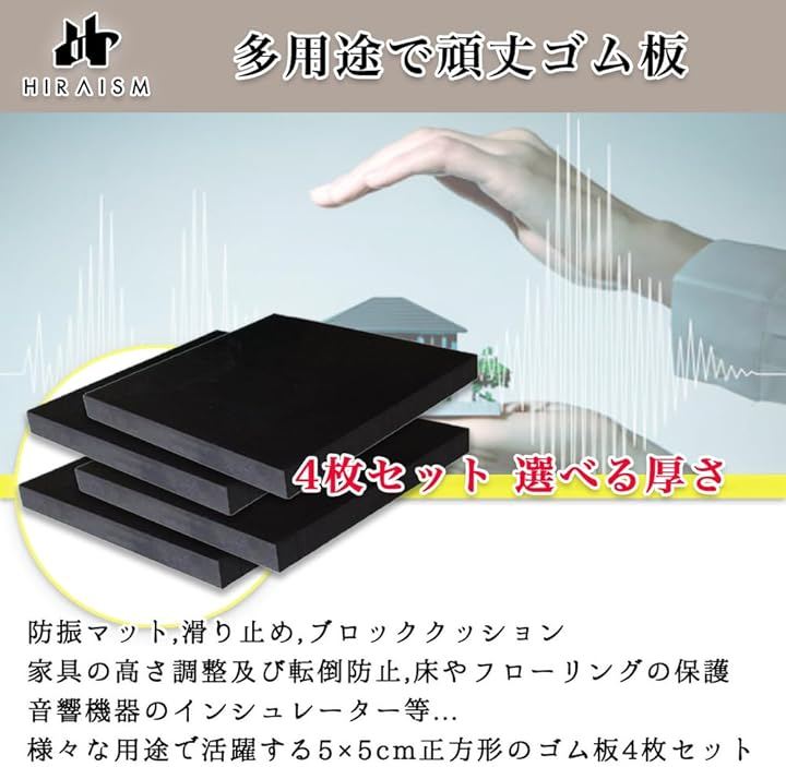 ゴム板 ブロック 滑り止め クッション 防振 防音 家具 高さ調整 衝撃吸収 マット 屋外 四角 5x5cm 4個セット