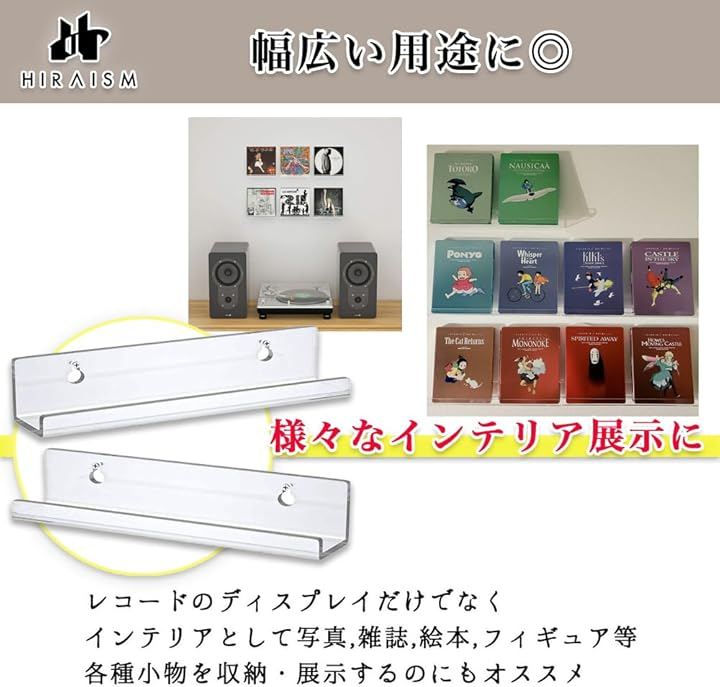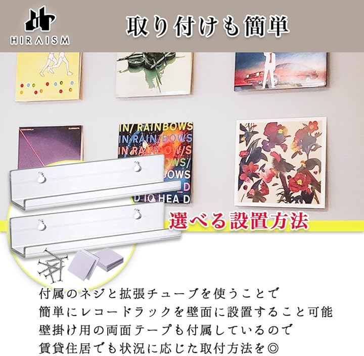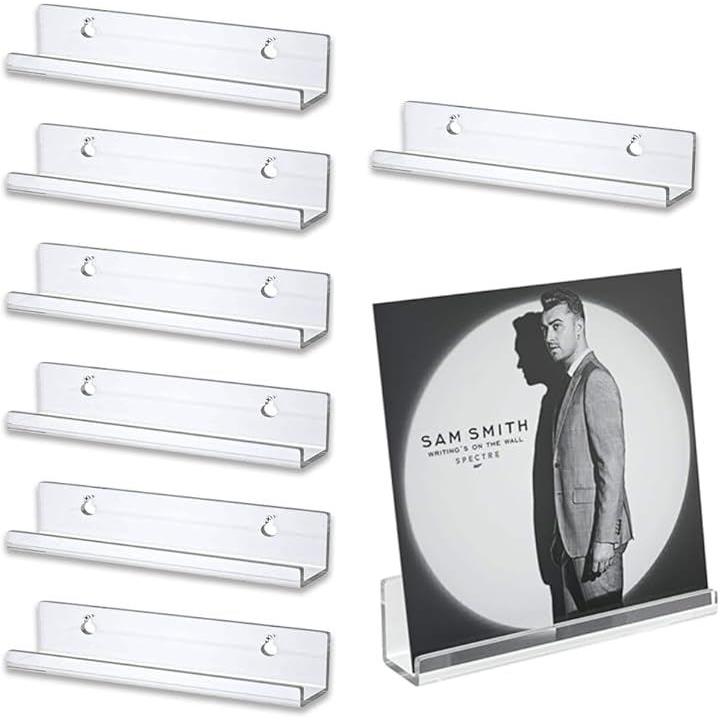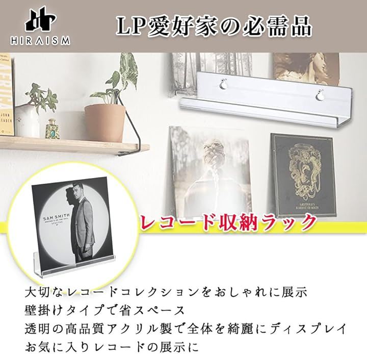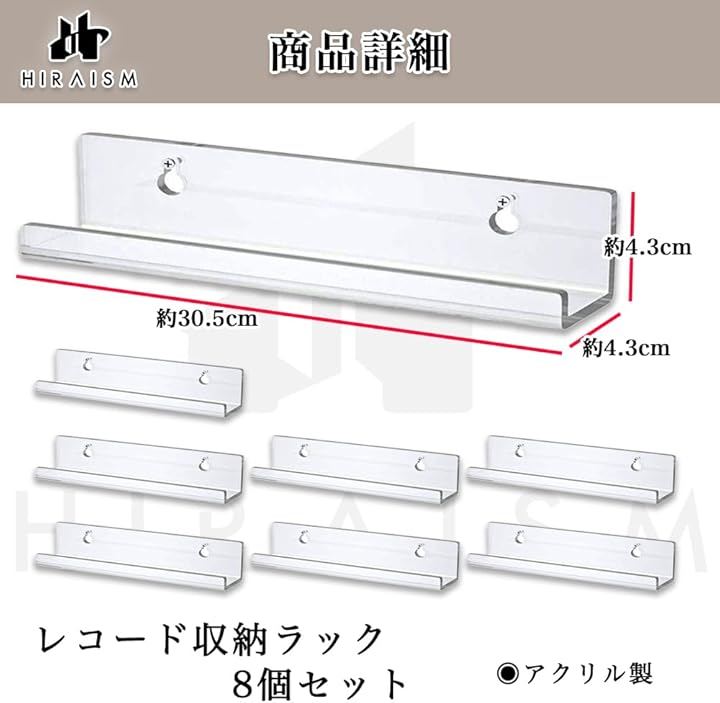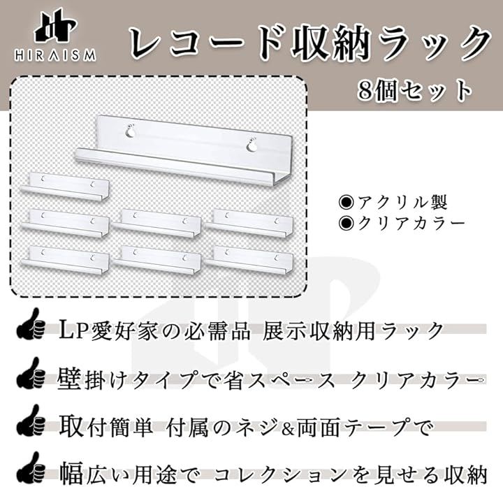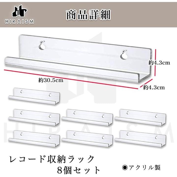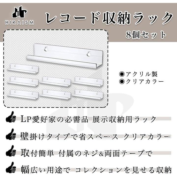 レコード 収納ラック 壁掛け アクリル 透明 ディスプレイ LP 展示 インテリア 簡単取付 8個セット
