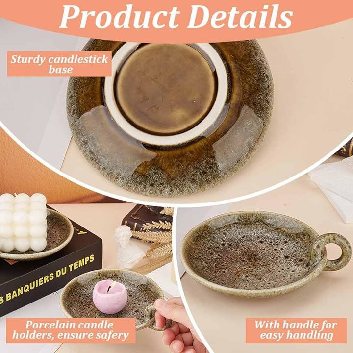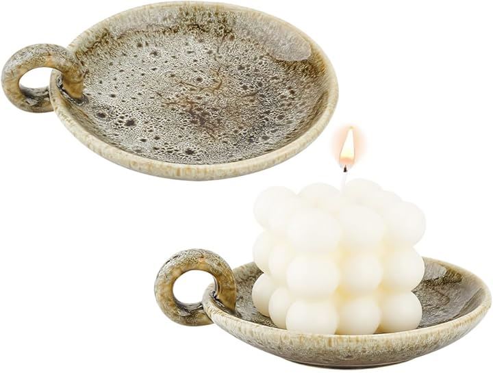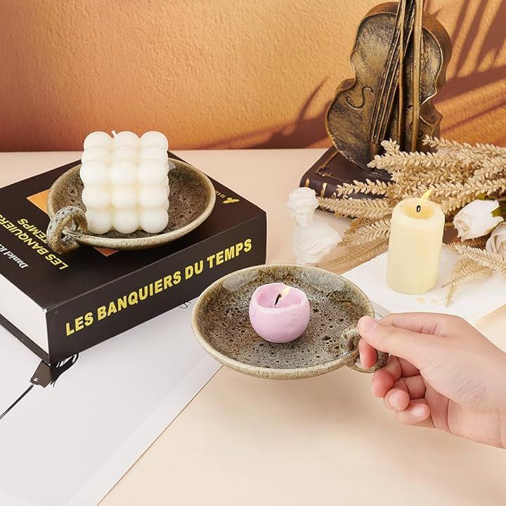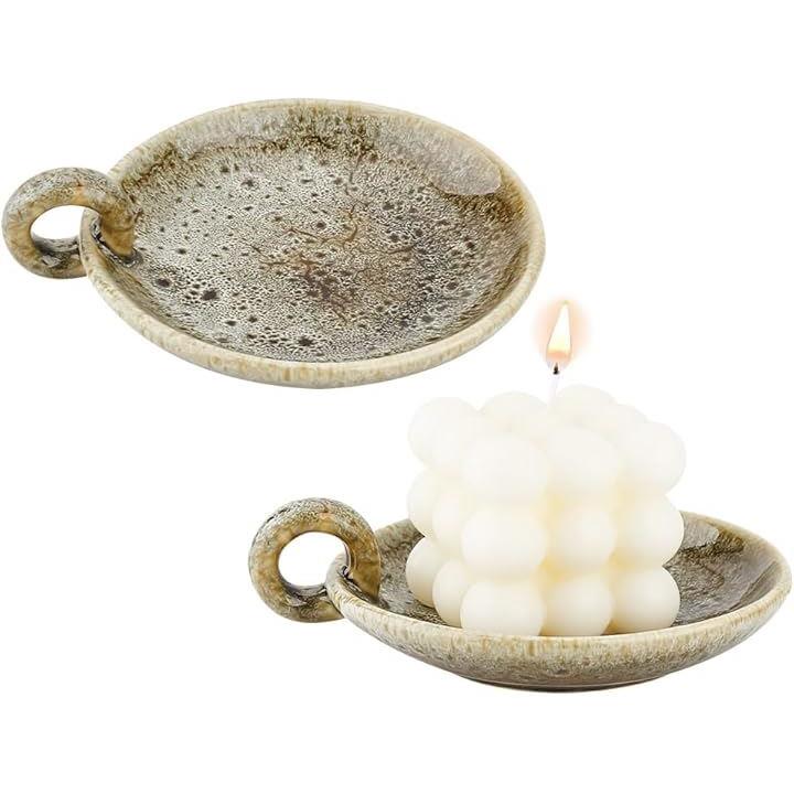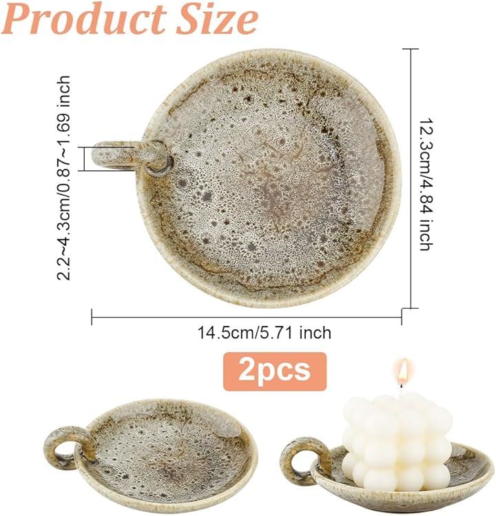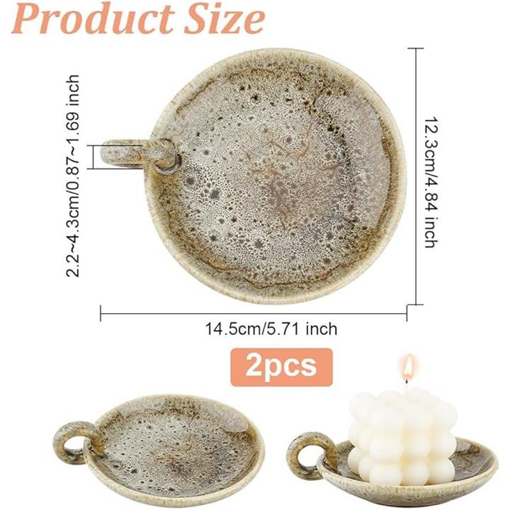 2個 セラミック燭台ホルダー 14.5x12.3x2.2~4.3cm ヴィンテージ燭台ホルダー キャンドルホルダー キャンドルスタンド 丸型キャンドルホルダートレイ パーティー 結婚式 フレグランスデコレーション