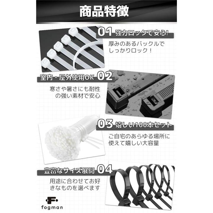fogman 結束バンド 耐久 屋外 100本セット (250 x 7.6mm, ブラック) |