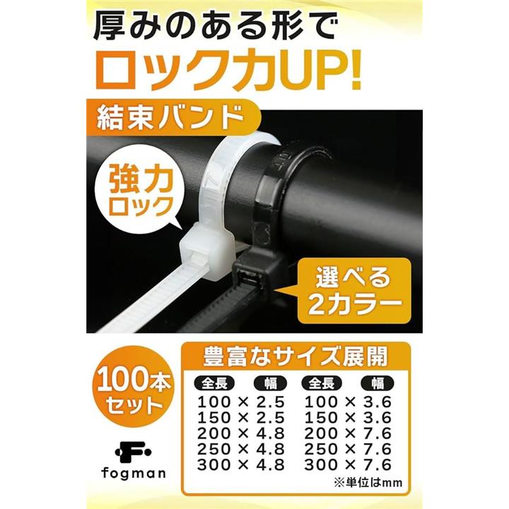 fogman 結束バンド 耐久 屋外 100本セット (100 x 2.5mm, ホワイト) |